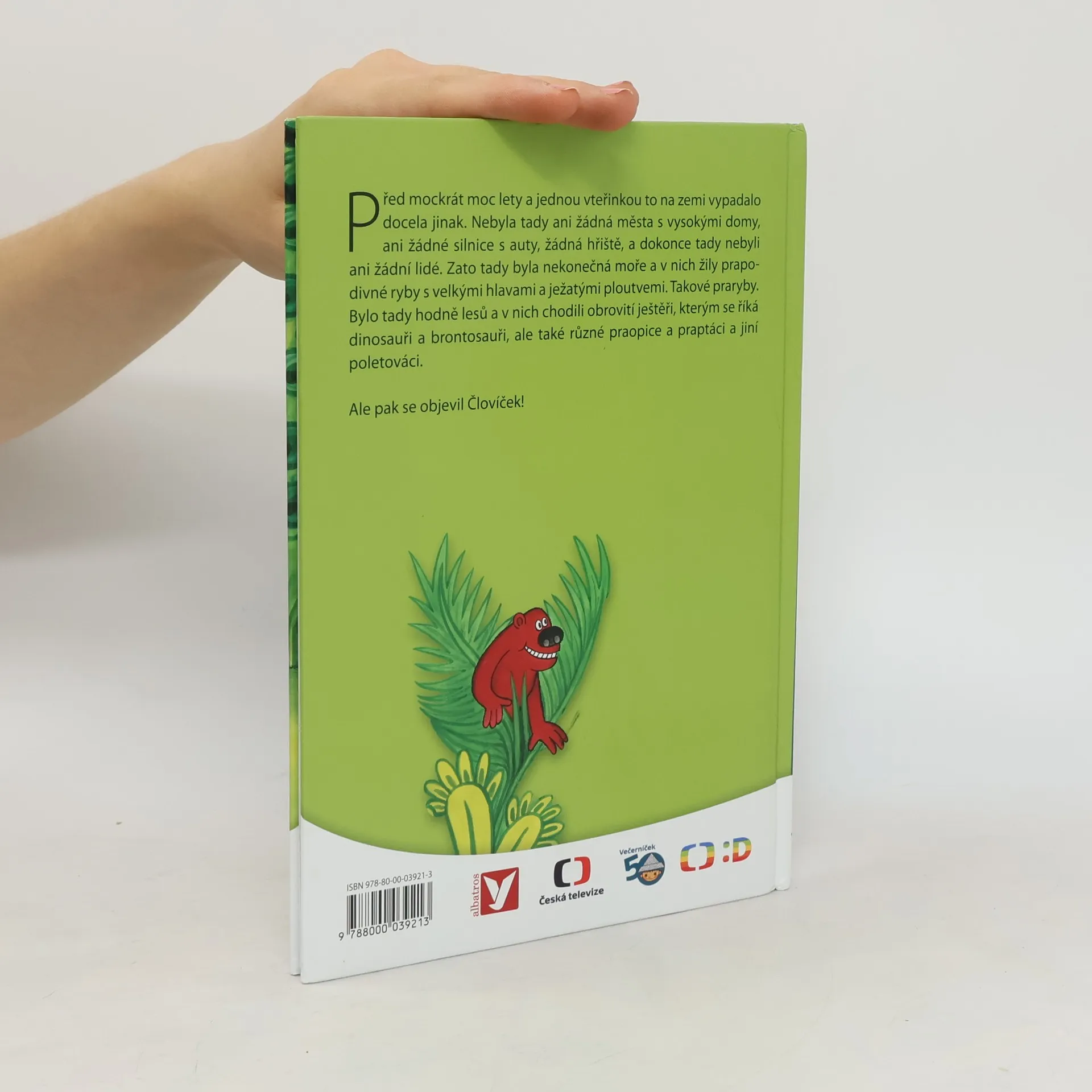 Před mockrát moc lety a jednou vteřinkou to na zemi vypadalo docela jinak. Nebyla tady ani žádná města s vysokými domy, ani žádné silnice s auty, žádná hřiště, a dokonce tady nebyli ani žádní lidé. Zato tady byla nekonečná moře a v nich žily prapodivné ryby s velkými hlavami a ježatými ploutvemi. Takové praryby. Bylo tady hodně lesů a v nich chodili obrovité ještěři, kterým se říká dinosauři brontosauři, ale také různé praopice a praptáci a jiní poletováci. Ale pak se objevil Človíček!