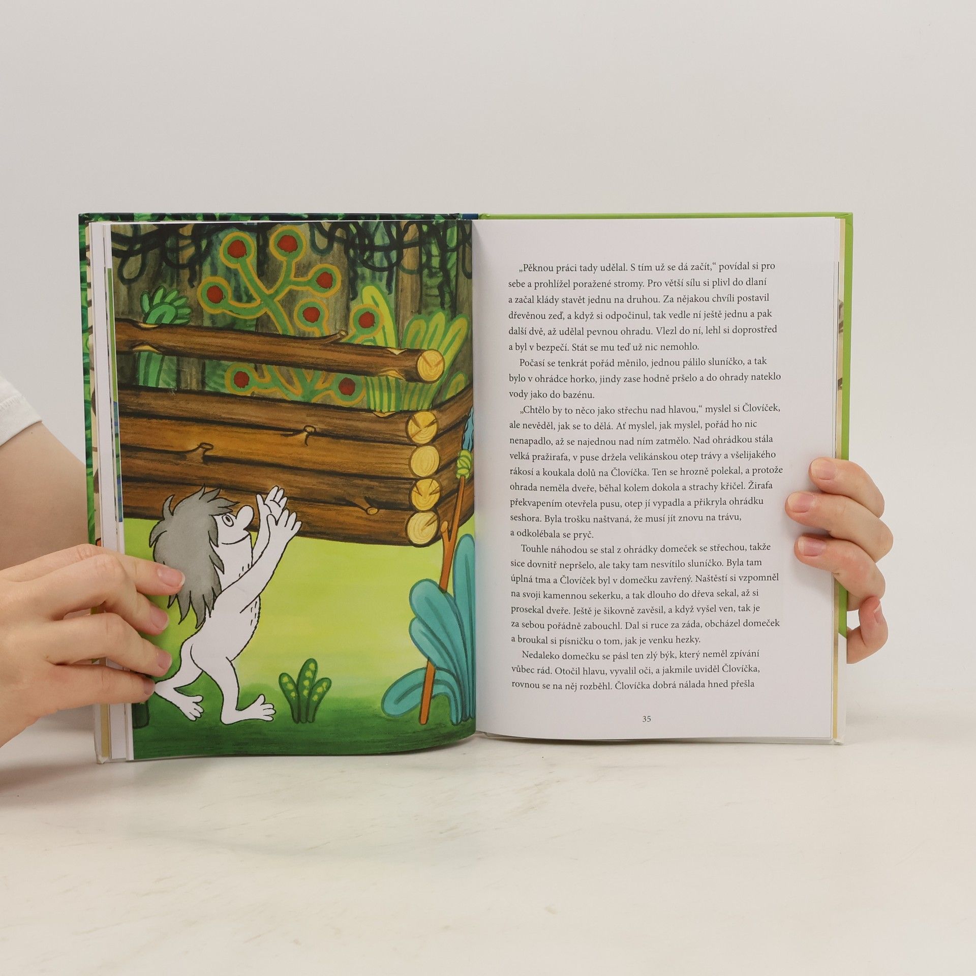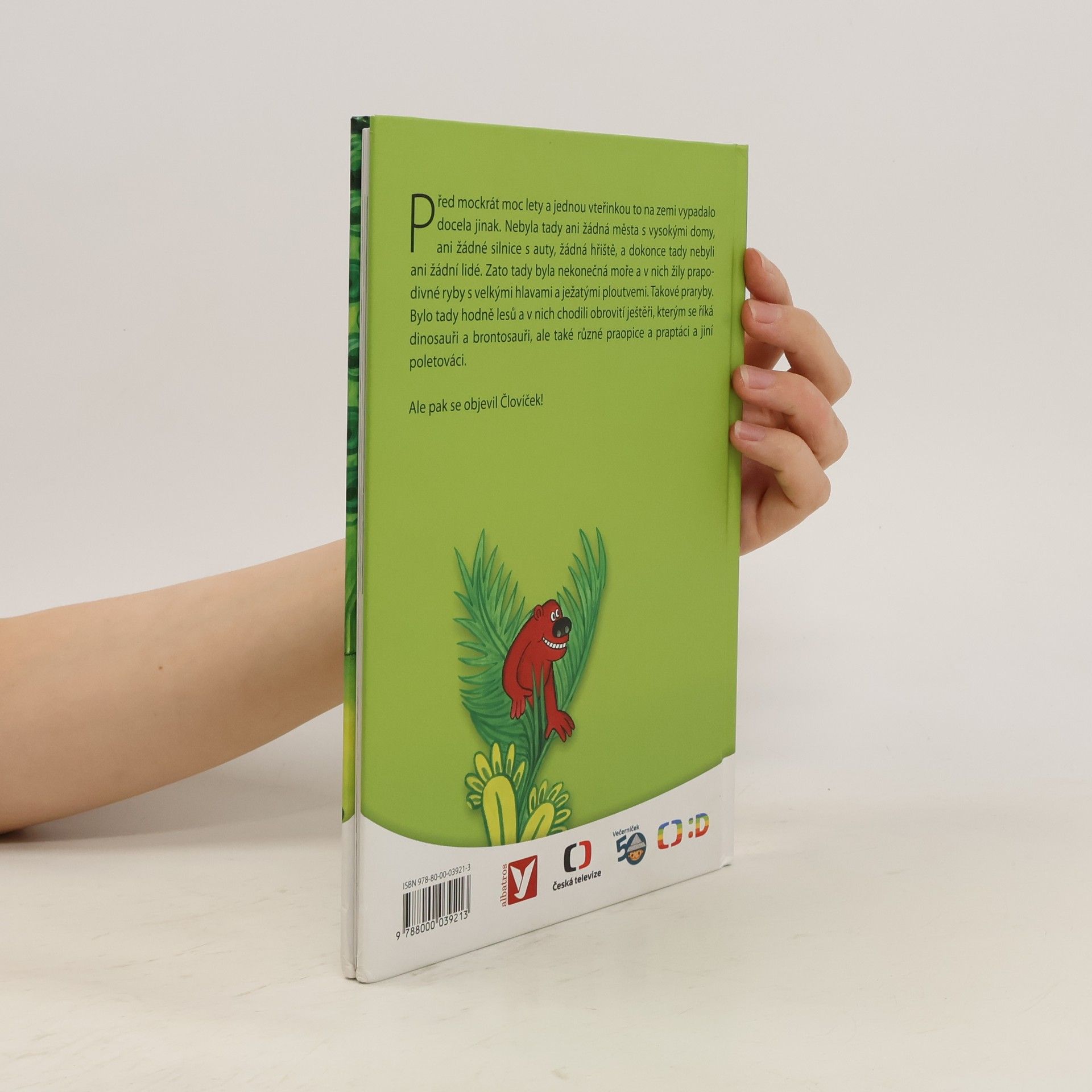 Před mockrát moc lety a jednou vteřinkou to na zemi vypadalo docela jinak. Nebyla tady ani žádná města s vysokými domy, ani žádné silnice s auty, žádná hřiště, a dokonce tady nebyli ani žádní lidé. Zato tady byla nekonečná moře a v nich žily prapodivné ryby s velkými hlavami a ježatými ploutvemi. Takové praryby. Bylo tady hodně lesů a v nich chodili obrovité ještěři, kterým se říká dinosauři brontosauři, ale také různé praopice a praptáci a jiní poletováci. Ale pak se objevil Človíček!