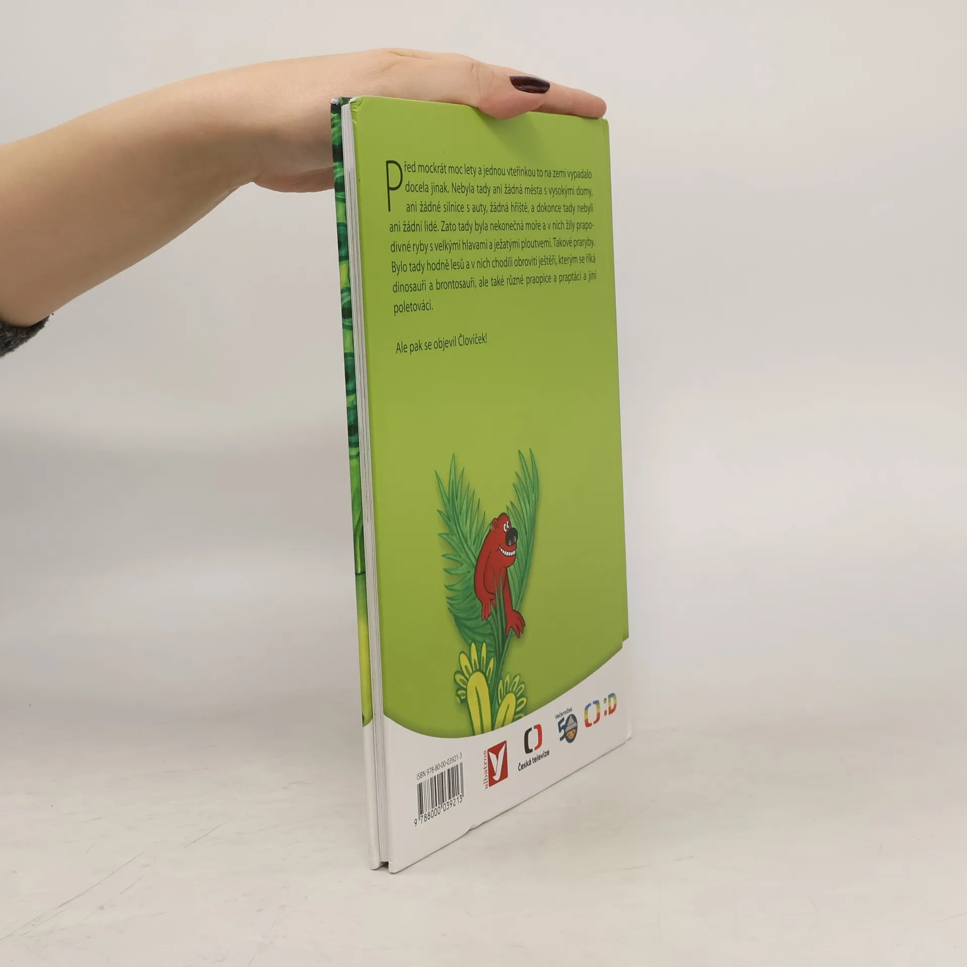 Před mockrát moc lety a jednou vteřinkou to na zemi vypadalo docela jinak. Nebyla tady ani žádná města s vysokými domy, ani žádné silnice s auty, žádná hřiště, a dokonce tady nebyli ani žádní lidé. Zato tady byla nekonečná moře a v nich žily prapodivné ryby s velkými hlavami a ježatými ploutvemi. Takové praryby. Bylo tady hodně lesů a v nich chodili obrovité ještěři, kterým se říká dinosauři brontosauři, ale také různé praopice a praptáci a jiní poletováci. Ale pak se objevil Človíček!