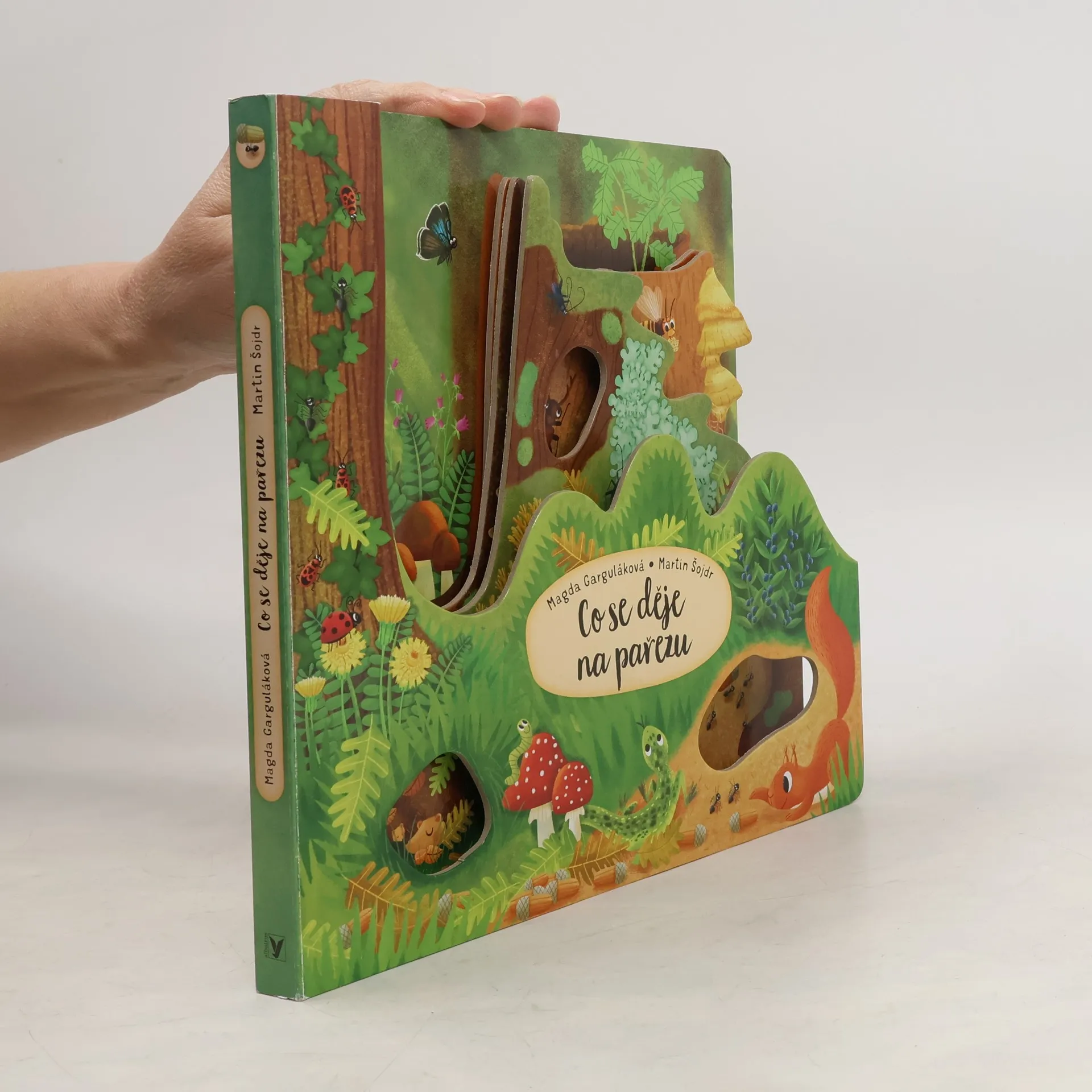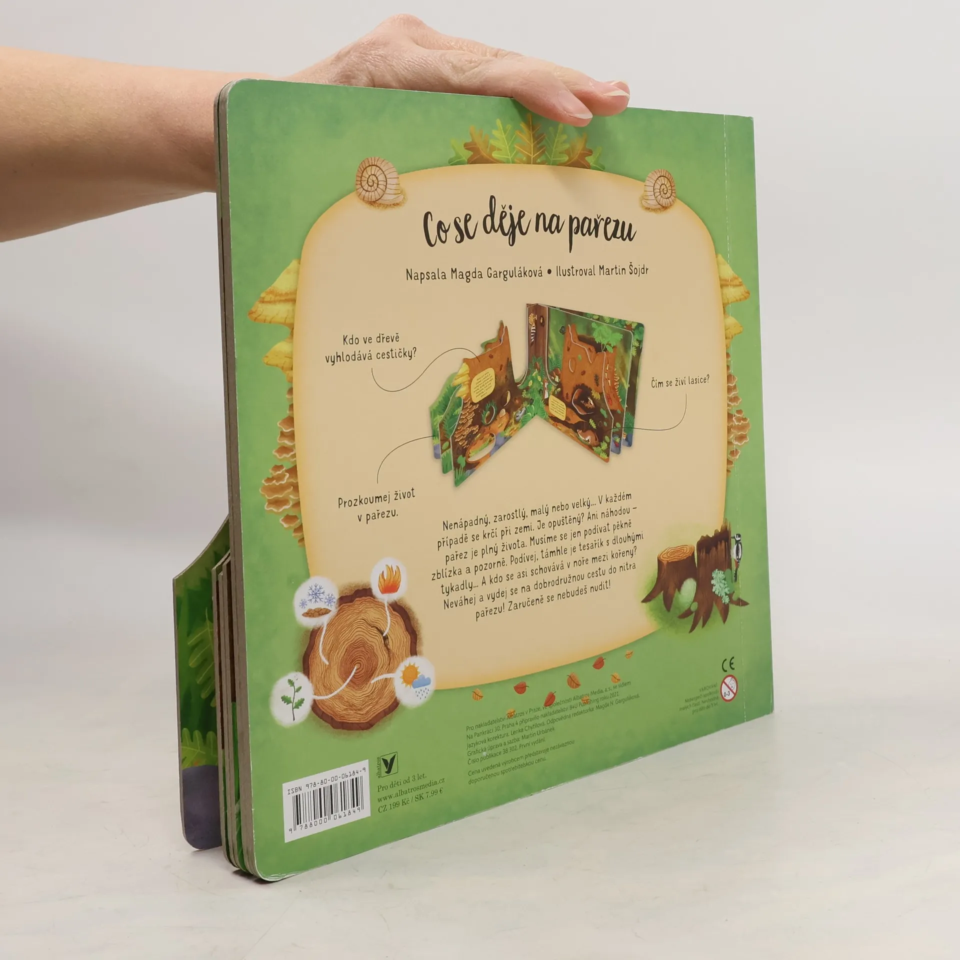 Nenápadný, zarostlý, popraskaný… v každém případě se krčí při zemi. Je tenhle pařez opuštěný? Ani náhodou – hemží se to u něj životem. Musíš ho jen prozkoumat pěkně zblízka a pozorně. Podívej, támhle je tesařík s dlouhými tykadly. A kdo se schovává v noře mezi kořeny? Neváhej a vydej se na dobrodružnou cestu do nitra pařezu! Zaručeně se nebudeš nudit ani chvilinku.