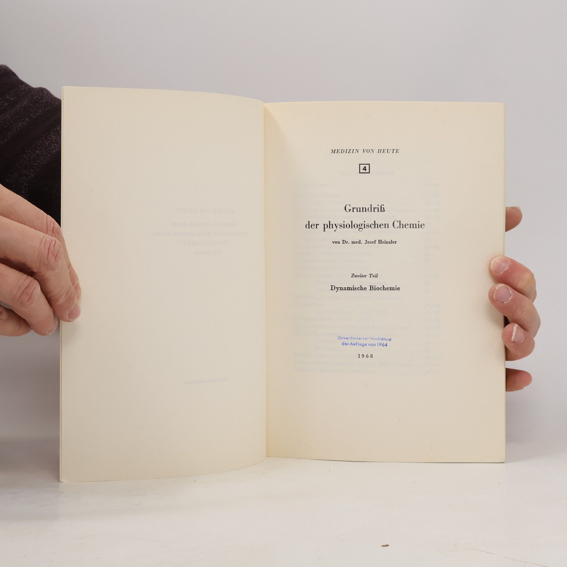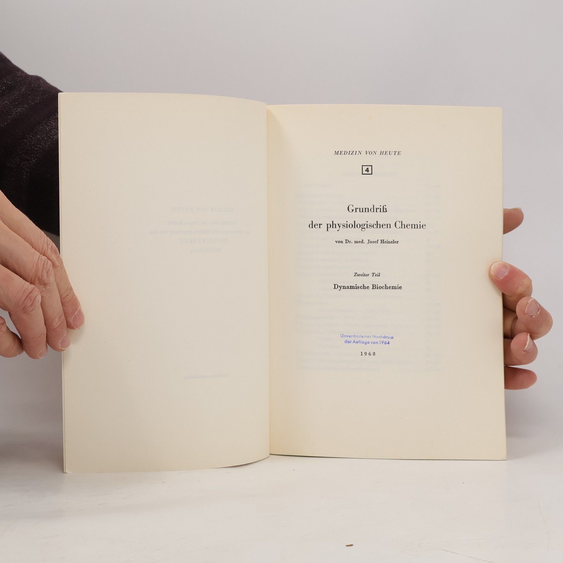 Medizin von heute 4. Grundriß der physiologischen Chemie, Josef Heinzler