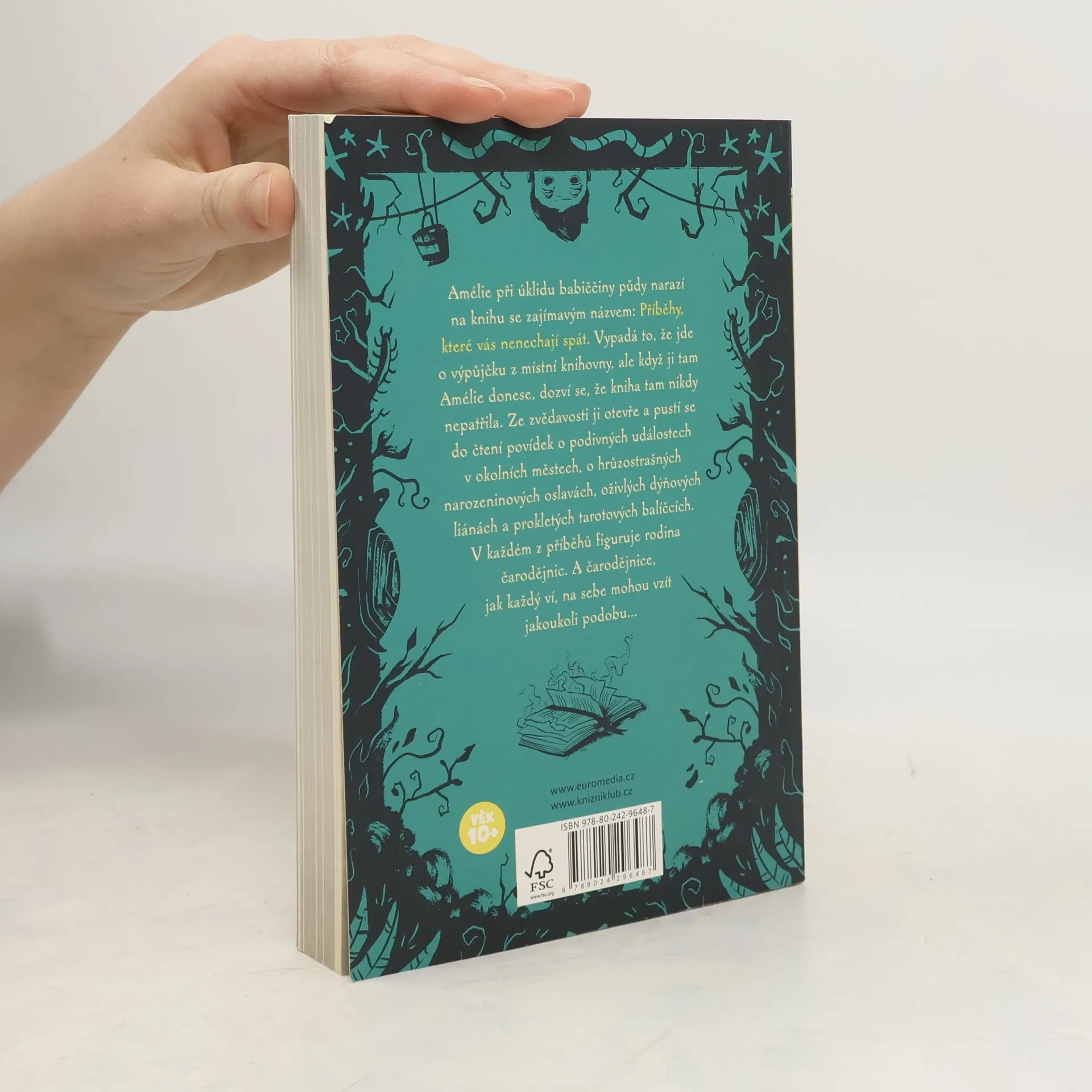 Tajemná kniha, kterou Amélie našla na půdě, ukrývá třináct hororových příběhů. Najdete odvahu pustit se do čtení s ní? Amélie při úklidu babiččiny půdy narazí na knihu se zajímavým názvem: Příběhy, které vás nenechají spát. Vypadá to, že jde o výpůjčku z místní knihovny, ale když ji tam Amélie donese, dozví se, že kniha tam nikdy nepatřila. Ze zvědavosti ji otevře a pustí se do čtení příběhů o podivných událostech v okolních městech, o hrůzostrašných narozeninových oslavách, oživlých dýňových liánách a prokletých tarotových balíčcích. V každém z příběhů figuruje rodina čarodějnic. A čarodějnice, jak každý ví, na sebe mohou vzít jakoukoli podobu... Nakladatelská anotace.