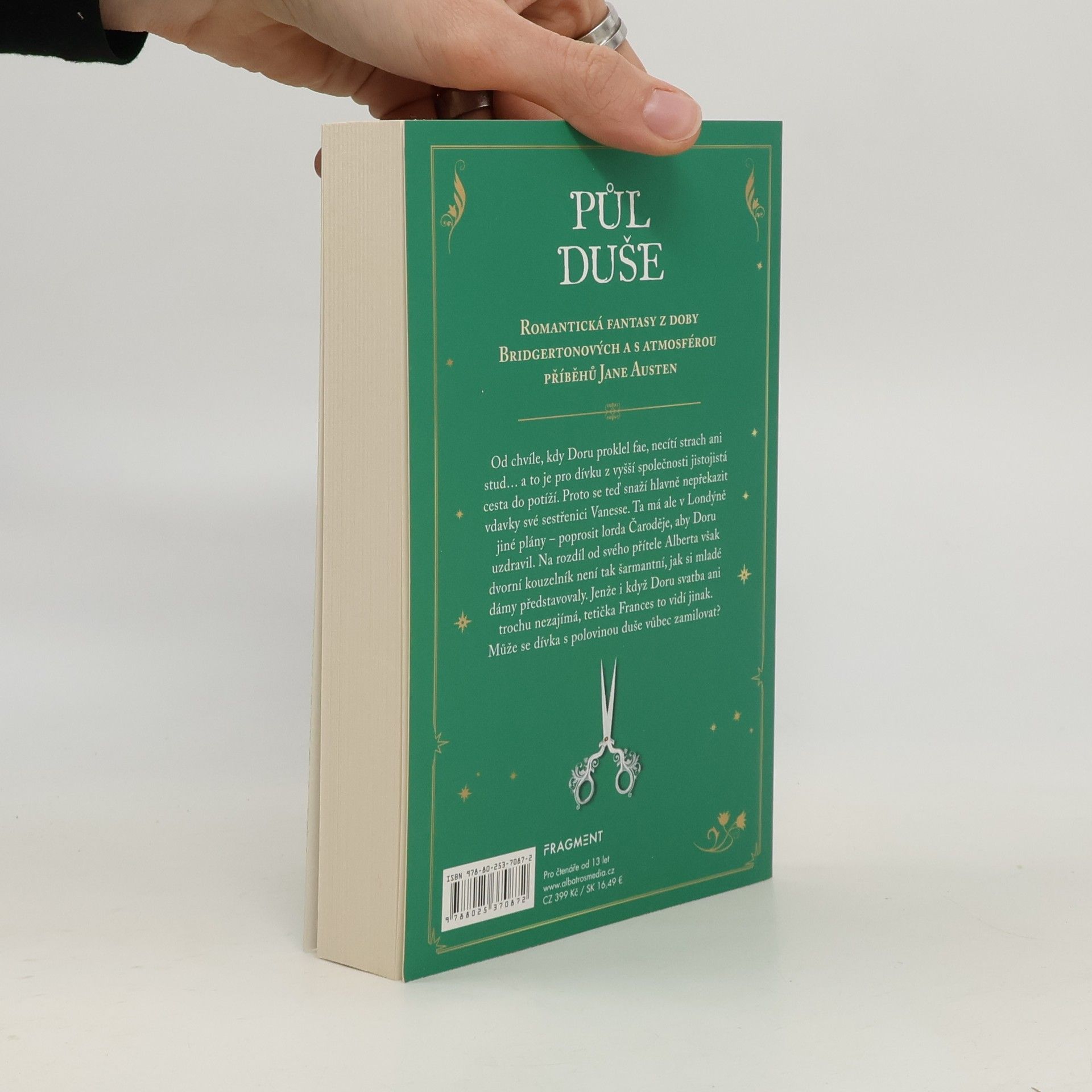 Romantická fantasy z doby Bridgertonových a s atmosférou příběhů Jane Austen. Od chvíle, kdy Doru proklel fae, necítí strach ani stud… a to je pro dívku z vyšší společnosti jistojistá cesta do potíží. Proto se teď snaží hlavně nepřekazit vdavky své sestřenici Vanesse. Ta má ale v Londýně jiné plány – poprosit lorda Čaroděje, aby Doru uzdravil. Na rozdíl od svého přítele Alberta však dvorní kouzelník není tak šarmantní, jak si mladé dámy představovaly. Jenže i když Doru svatba ani trochu nezajímá, tetička Frances to vidí jinak. Může se dívka s polovinou duše vůbec zamilovat?