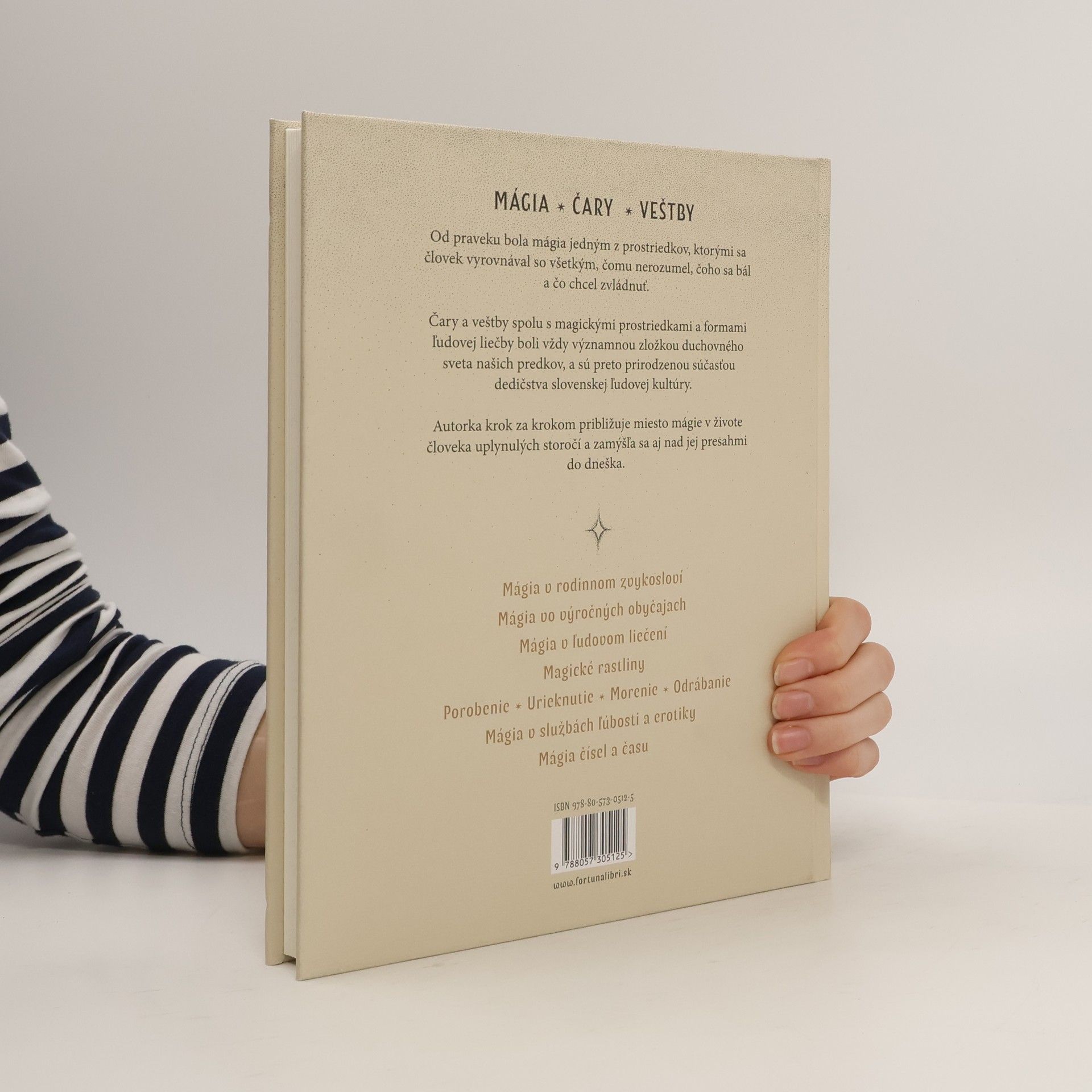 Od praveku jeden z prostriedkov, ktorými sa človek vyrovnával so všetkým, čomu nerozumel, čoho sa bál a čo chcel zvládnuť. Čary a veštby spolu s magickými prostriedkami a formami ľudovej liečby boli vždy významnou zložkou duchovného sveta našich predkov a sú preto prirodzenou súčasťou dedičstva slovenskej ľudovej kultúry. Autorka krok za krokom približuje miesto mágie v živote človeka uplynulých storočí a zamýšľa sa aj nad jej presahmi do dneška. Mágia v rodinnom zvykosloví Mágia vo výročných obyčajach Mágia v ľudovom liečení Magické rastliny Porobenie * Urieknutie * Morenie * Odrábanie Mágia v službách ľúbosti a erotiky Mágia čísel a času