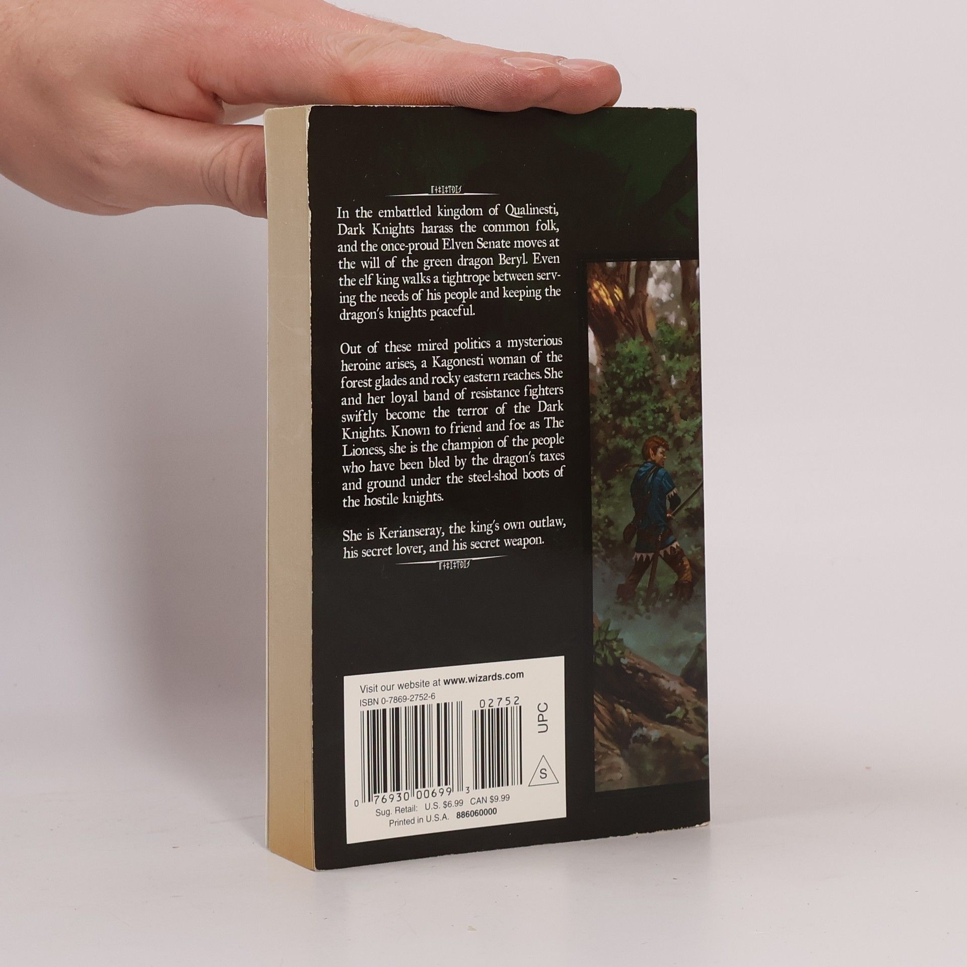 In the embattled kingdom of Qualinesti, Dark Knights harass the common folk, and the once-proud Elven Senate moves at the will of the green dragon Beryl. Even the elf king walks a tightrope between serving the needs of his people and keeping the dragon's knights peaceful. Out of these mired politics a mysterious heroine arises, a Kagonesti woman of the forest glades and rocky eastern reaches. She and her loyal band of resistance fighters swiftly become the terror of the Dark Knights. Known to friend and foe as The Lioness, she is the champion of the people who have been bled by the dragon's taxes and ground under the steel-shod boots of the hostile knights. She is Kerianseray, the king's own outlaw, his secret lover, and his secret weapon.