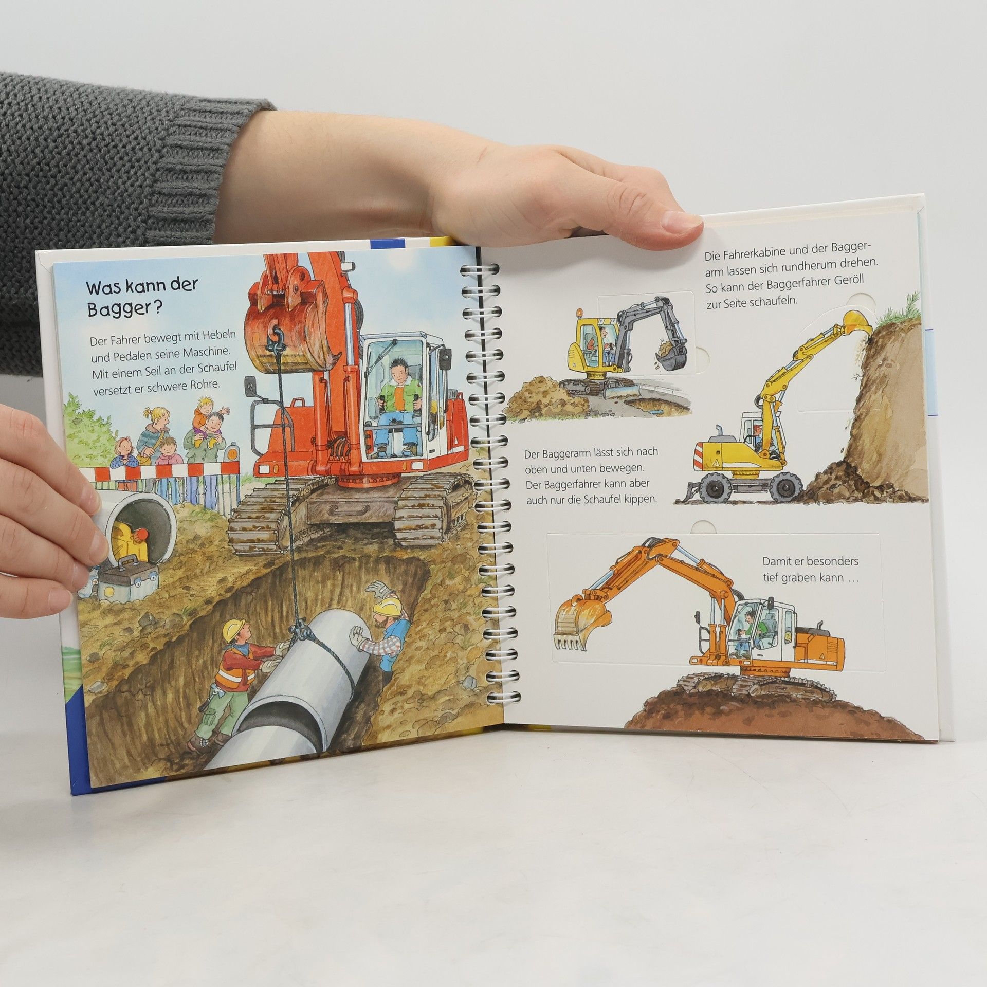 Für die Kleinen sind Bagger das Größte. Gebannt beobachten sie, wie die mächtigen Schaufeln ins Erdreich graben. Doch wie kommen die Fahrzeuge zur Baustelle? Was können Schrott- und Abrissbagger? Raffinierte Klappen verdeutlichen ihre Aufgaben, während detailreiche Illustrationen es den Kindern ermöglichen, die Bagger aus verschiedenen Perspektiven zu betrachten. Die Sachbuchreihe richtet sich an Kinder von 2-4 Jahren und beantwortet ihre vielen Fragen auf Augenhöhe. Themen aus ihrem Alltag und Interessenswelt werden altersgerecht und mit viel Liebe zum Detail beleuchtet. Die Reihe ist speziell auf kleine Hände und die Bedürfnisse der Jüngsten abgestimmt. Klare, liebevolle Bilder, kurze Sachtexte und handliche Klappen, die Bewegungen veranschaulichen, ermöglichen es den Kindern, ihre Themen selbst zu entdecken. Der Spaß am eigenständigen Erkunden, die liebevolle Gestaltung und die hochwertige Ausstattung garantieren langanhaltende Freude an jedem Buch.