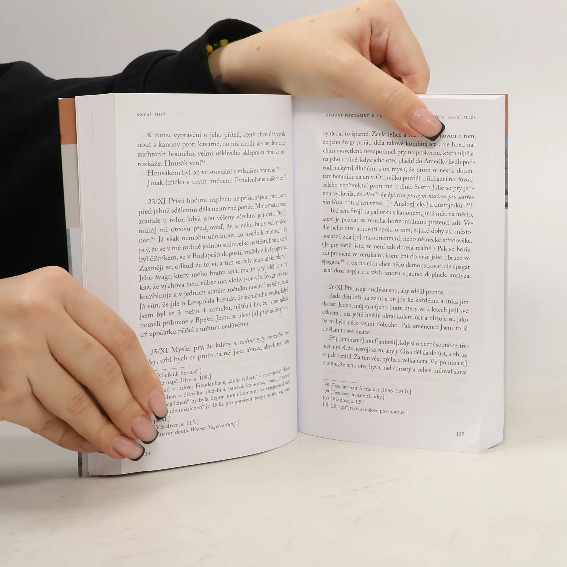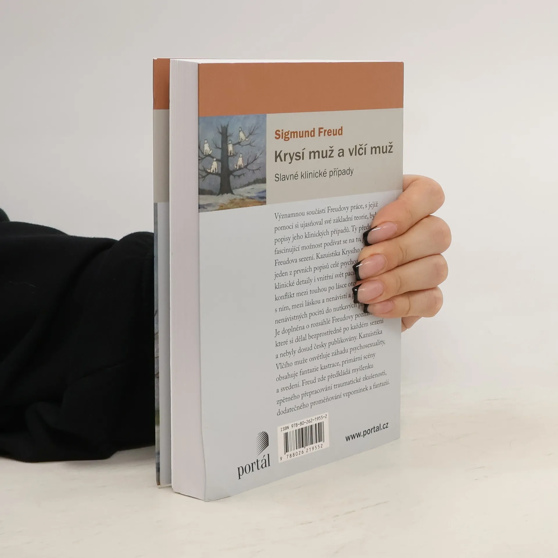Významnou součástí Freudovy práce, s jejíž pomocí si ujasňoval své základní teorie, byly popisy jeho klinických případů – kazuistiky jeho pacientů. Ty představují fascinující možnost podívat se na to, jak probíhala Freudova každodenní sezení. V předkládaném výboru představujeme kazuistiky Krysího muže a Vlčího muže. Krysí muž shrnuje jeden z prvních popisů celé psychoanalytické léčby, klinické detaily i vnitřní svět pacienta. Ilustruje konflikt mezi touhou po lásce otce a zápasem s ním, mezi láskou a nenávistí a přemístění nenávistných pocitů do nutkavých příznaků. Naproti tomu Vlčí muž osvětluje záhadu psychosexuality, obsahující fantazie kastrace, primární scény a svedení. Freud v této kazuistice předkládá myšlenku zpětného přepracování traumatické zkušenosti, dodatečného proměňování vzpomínek a fantazií. Kazuistika Krysího muže je doplněna o rozsáhlé Freudovy poznámky, které si dělal bezprostředně po každém sezení. Ty se našly v jeho pozůstalosti a nebyly dosud česky publikovány. Jsou ale skvělým dokladem toho, jak Freud klinicky pozoroval a přemýšlel.Při četbě Freudových případových studií se ukazuje nejen to, že Freud byl schopen mistrovsky analyzovat lidské nitro a promluvit o vytěsněných stránkách lidské duše, ale i to, že jeho výpovědi mají vysokou literární úroveň.