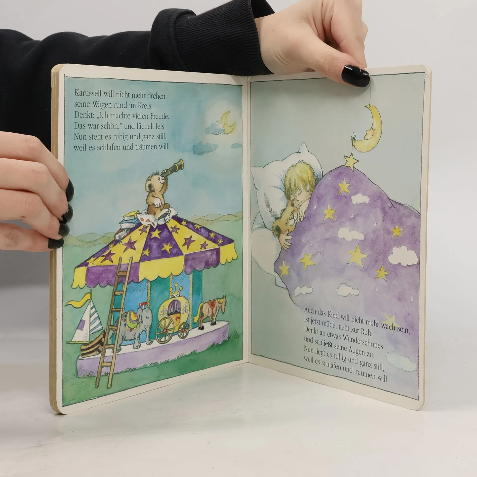 In humorvollen Versen wird Kindern vermittelt, dass alles müde ist, von Bagger bis Karussell. Doch kann es wirklich sein, dass der Betrachter dieser Bilder nicht schlafen kann?
