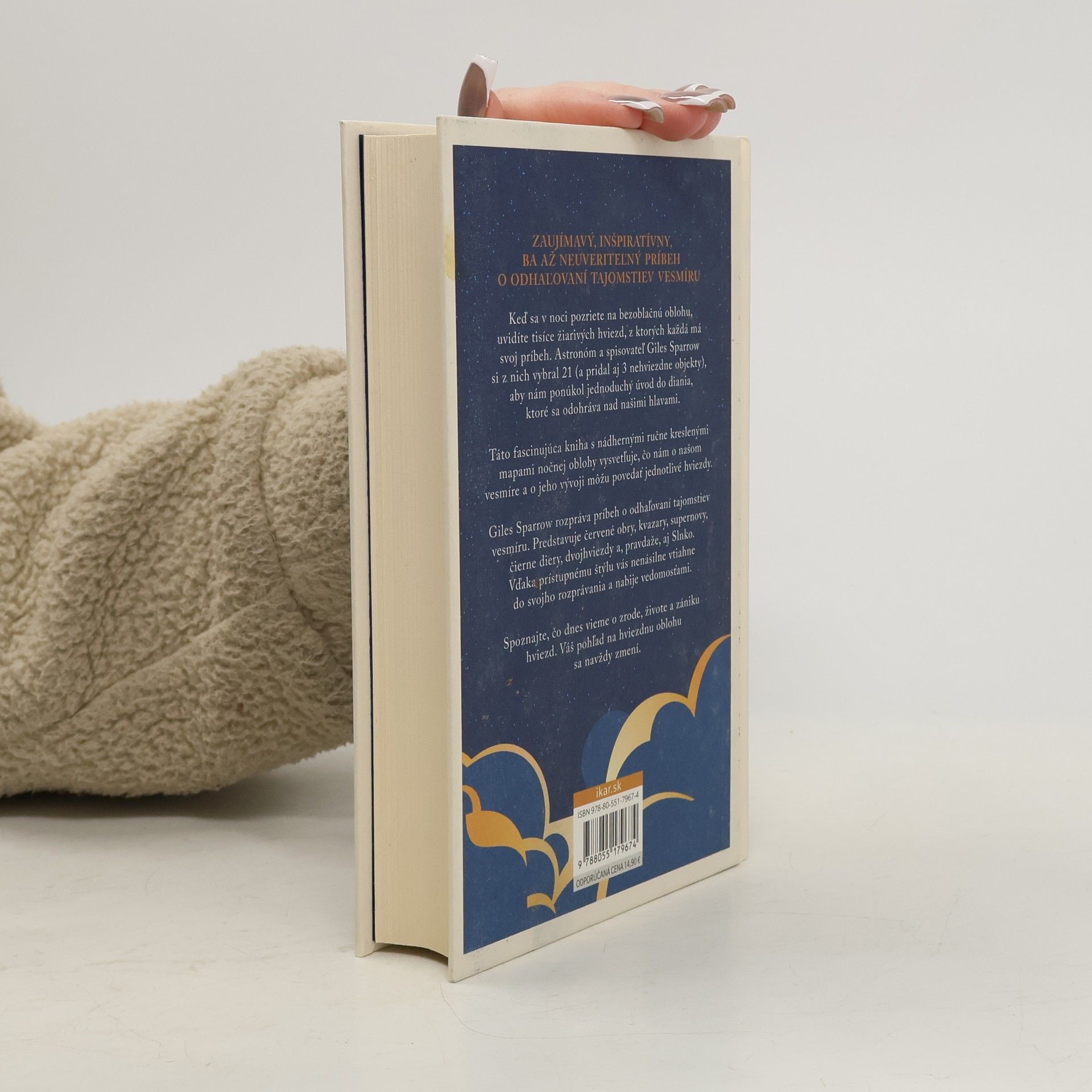 ZAUJÍMAVÝ, INŠPIRATÍVNY, BA AŽ NEUVERITEĽNÝ PRÍBEH O ODHAĽOVANÍ TAJOMSTIEV VESMÍRUKeď sa v noci pozriete na bezoblačnú oblohu, uvidíte tisíce žiarivých hviezd (ak máte dobrý zrak, tak až 4 500), z ktorých každá má svoj príbeh. Astronóm a spisovateľ Giles Sparrow si z nich vybral 21 (a pridal aj 3 nehviezdne objekty, ktoré nie sú z Mliečnej cesty, ale za jasnej noci ich možno zachytiť voľným okom), aby nám ponúkol jednoduchý úvod do diania, ktoré sa odohráva nad našimi hlavami.Táto fascinujúca kniha s nádhernými ručne kreslenými mapami nočnej oblohy vysvetľuje (každému, kto je zvedavý), čo nám o našom vesmíre a o jeho vývoji môžu povedať jednotlivé hviezdy.Giles Sparrow rozpráva príbeh o odhaľovaní tajomstiev vesmíru. Začína najlenivejšou hviezdou na oblohe Polárkou a pokračuje jej spoločníčkami z ďalších častí oblohy. Predstavuje červené obry, kvazary, supernovy, čierne diery, dvojhviezdy a, pravdaže, aj Slnko. Vďaka prístupnému štýlu vás nenásilne vtiahne do svojho rozprávania a nabije vedomosťami.Dozviete sa, čo dnes vieme o zrode, zložení, živote a zániku hviezd. Ako ich vidíme či nevidíme na nočnej oblohe. Aké legendy sa s nimi spájajú, čo si o nich mysleli ľudia v minulosti a čo nám o nich prezradili technologické vymoženosti. Váš pohľad na hviezdnu oblohu sa navždy zmení.