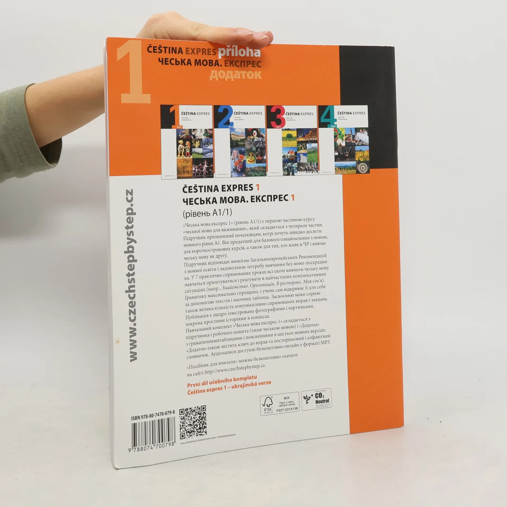 Kniha (96 stran) a 1 sešit přílohy (67 stran). Pokrývá polovinu úrovně A1. V sedmi prakticky zaměřených lekcích se zájemci o češtinu naučí zorientovat se a reagovat v základních komunikačních situacích (např. témata seznámení, orientace, moje rodina, kdy se sejdeme apod.). Soustředí se na zvládnutí řečových dovedností, česká gramatika je zde maximálně zjednodušena. Ukrajinská verze. V příloze částečně ukrajinský text.