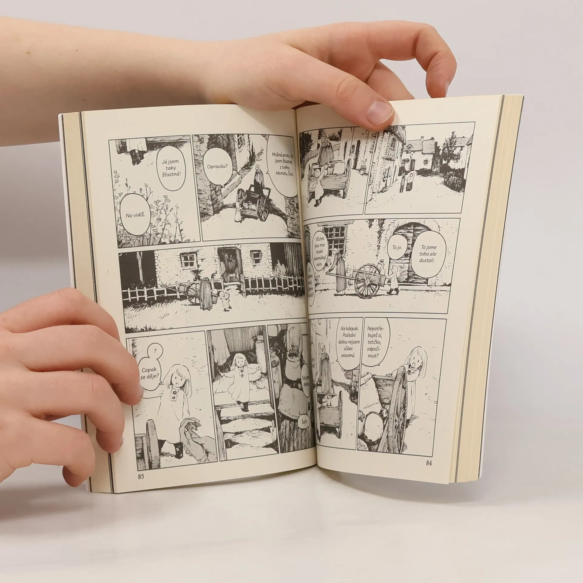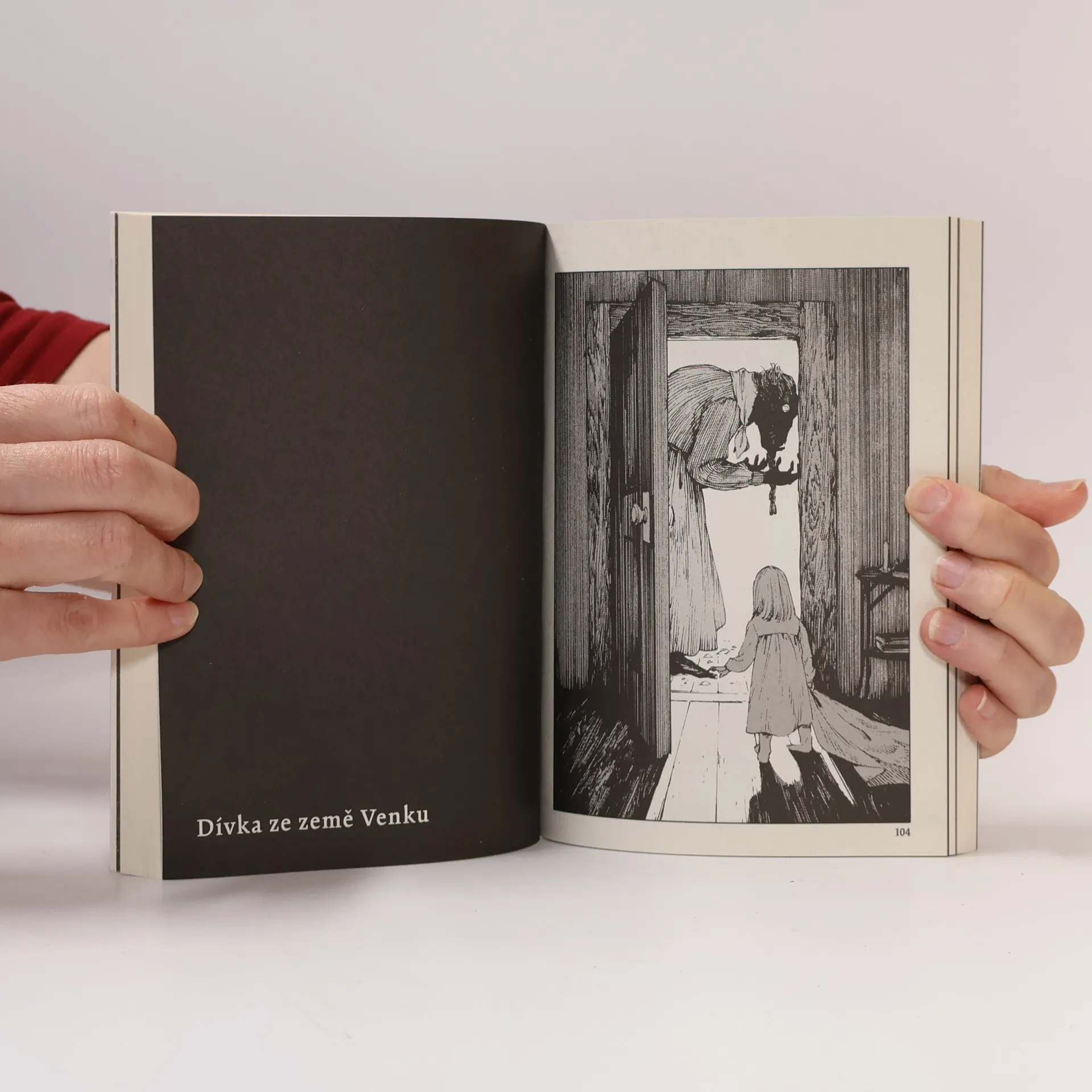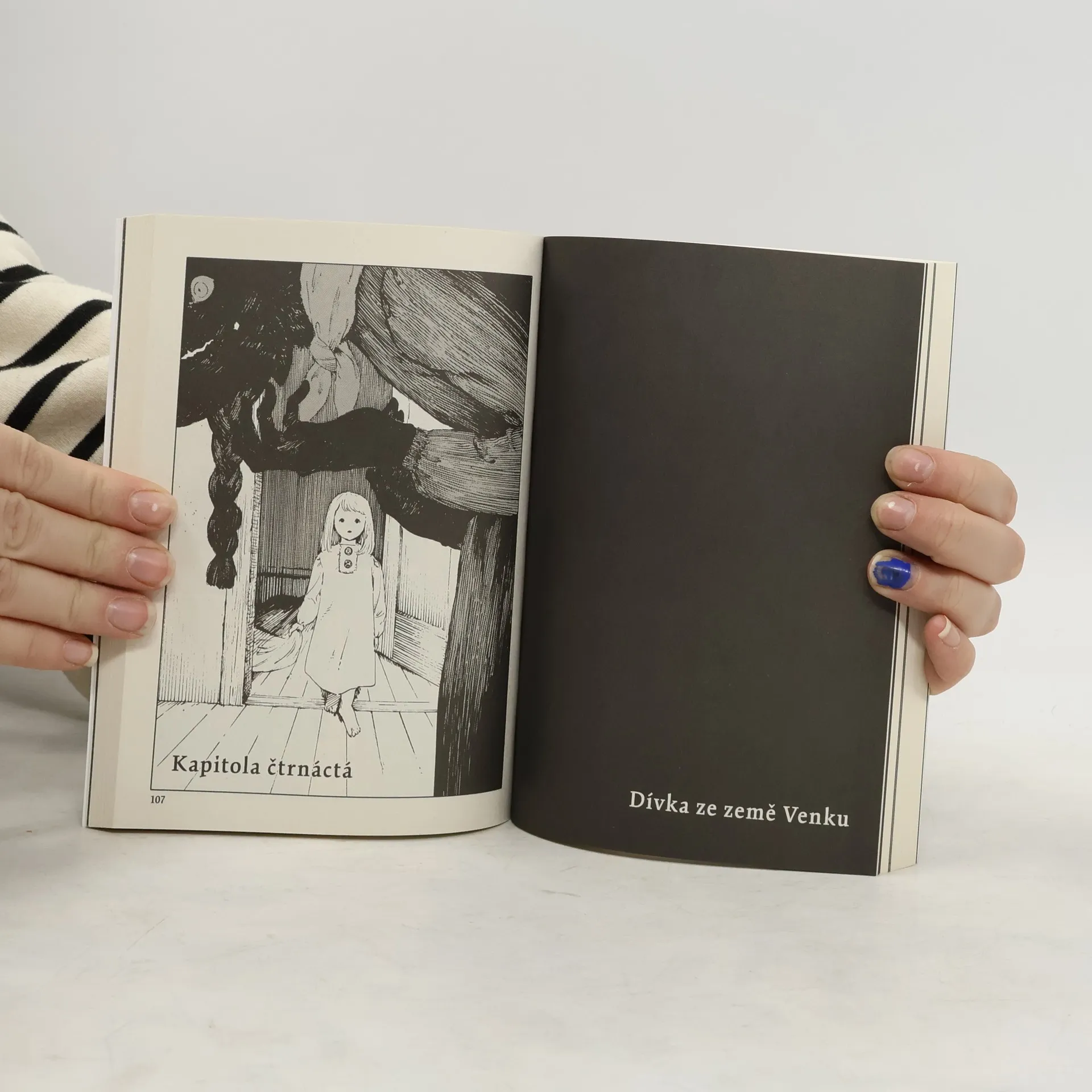 Kdysi dávno byly dvě země, oddělené od sebe vysokou zdí. Země Uvnitř, kde žili lidé, a země Venku, obývaná prokletými bytostmi. Prokletí se šířilo dotykem – a tak každého, kdo vkročil dozemě Venku, čekal přísný trest. I přes to však v zemi Venku žila malá dívenka jménem Šiva. Nebyla sama – starala se o ni prokletá bytost, pan učitel. Ti dva se nesměli dotknout, avšak poutalo je k sobě více, než by se na první pohled mohlo zdát. Dívenka ze země Venku je melancholický fantasy komiks plný bohaté představivosti a temných prvků. Vymyká se současné japonské komiksové produkci jak grafickým zpracováním, tak citlivým příběhem, který čtenáře záhy pohltí. Dětská zvídavost hlavní hrdinky odhaluje svět plný podivných bytostí a lidí, jejichž pohnuté osudy a strach z prokletí prověří, kam až sahá dojemné přátelství Šivy a jejího ochránce. Šiva má ohromnou radost ze setkání s tetičkou, o níž si už myslela, že ji znovu neuvidí. Avšak směrem, kterým se vydaly, se rozléhá pouze temná nekonečná cesta. Jaký osud čeká dívenku na cestě domů, dlážděné kameny, v nichž se odráží koňské ržání a chladné, tiché hlasy? Příběh dvou, dívky a bytosti, chycených v hluboké průrvě, která odděluje noc a den…