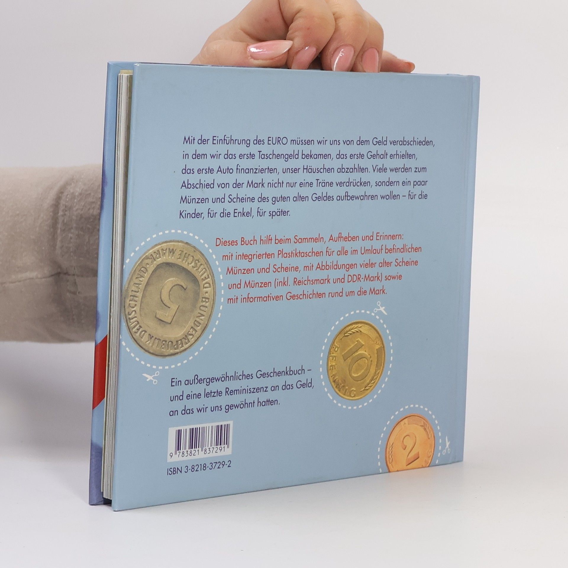 Das Buch bietet eine Möglichkeit, sich von der D-Mark zu verabschieden, indem es das Sammeln und Aufbewahren von Münzen und Scheinen erleichtert. Es enthält Abbildungen alter Währungen und Geschichten zur D-Mark, ideal als Erinnerungsstück und Geschenk, besonders nach der Einführung des Euro.