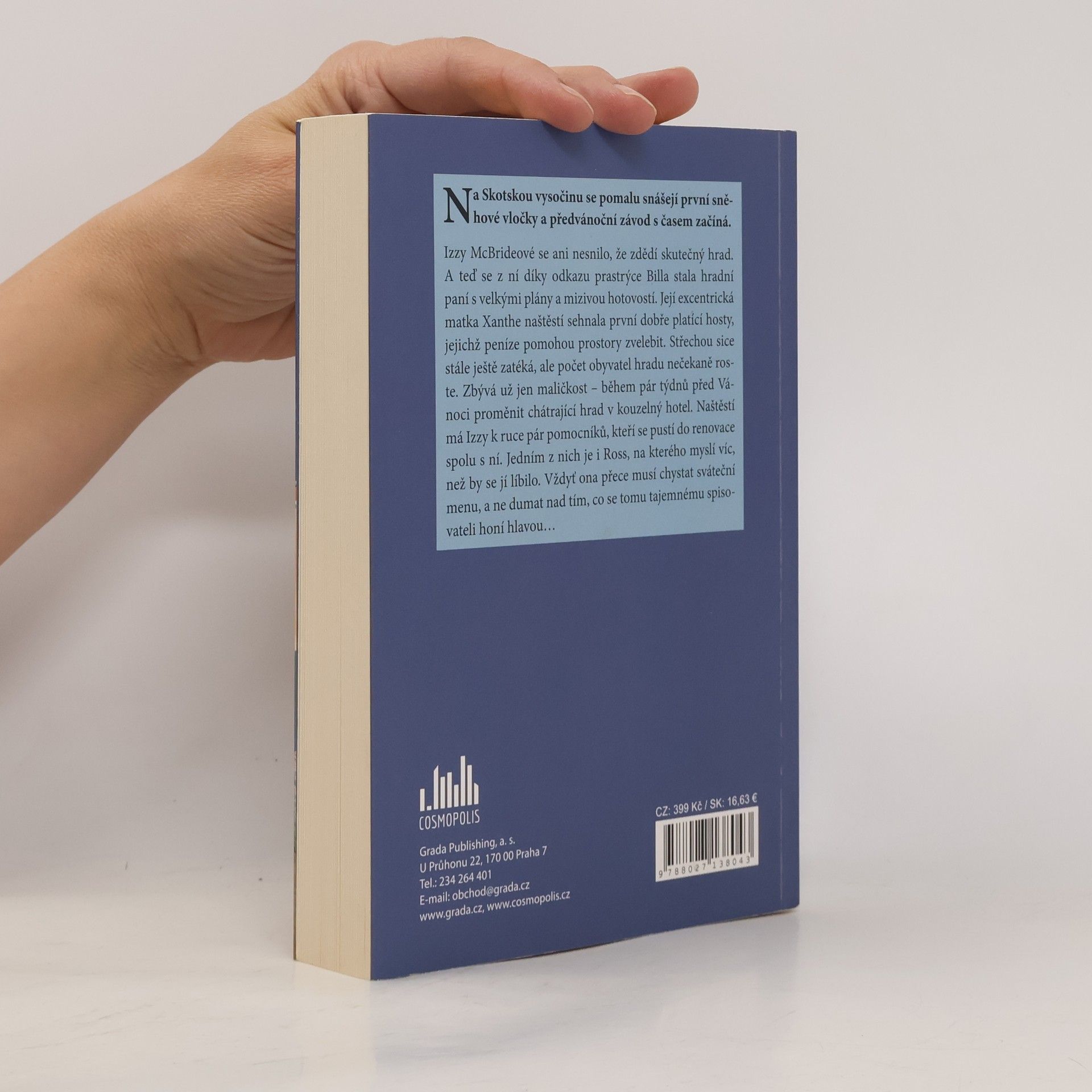Na Skotskou vysočinu se pomalu snášejí první sněhové vločky a předvánoční závod s časem začíná Izzy McBrideové se ani nesnilo, že zdědí skutečný hrad. A teď se z ní díky odkazu prastrýce Billa stala hradní paní s velkými plány a mizivou hotovostí. Její excentrická matka Xanthe naštěstí sehnala první dobře platící hosty, jejichž peníze pomohou prostory zvelebit. Střechou sice stále ještě zatéká, ale počet obyvatel hradu nečekaně roste. Zbývá už jen maličkost – během pár týdnů před Vánoci proměnit chátrající hrad v kouzelný hotel. Naštěstí má k ruce pár pomocníků, kteří se pustí do renovace spolu s ní. Jedním z nich je i Ross, na kterého Izzy myslí víc, než by se jí líbilo. Vždyť ona přece musí chystat sváteční menu, a ne dumat nad tím, co se tomu tajemnému spisovateli honí hlavou…