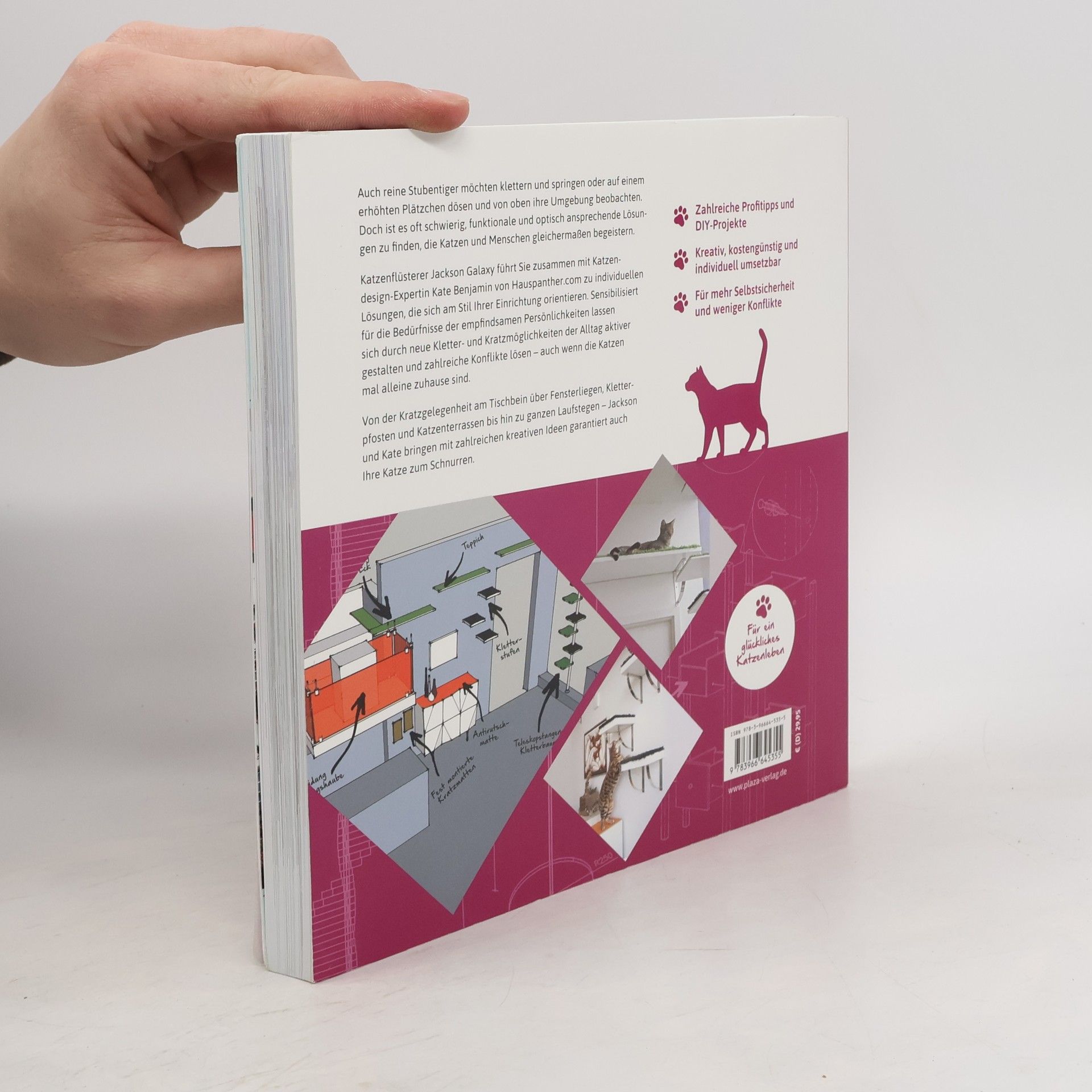 Gestalten Sie Ihr Zuhause katzengerechter mit über 300 Seiten von Katzenexperte Jackson Galaxy und Katzendesign-Expertin Kate Benjamin. Das Buch bietet kreative Ideen, Tipps und DIY-Projekte, um ein katzenfreundliches Heim zu schaffen, das den Bedürfnissen Ihrer Katze entspricht und positive Verhaltensweisen fördert. Ein Muss für Katzenbesitzer!