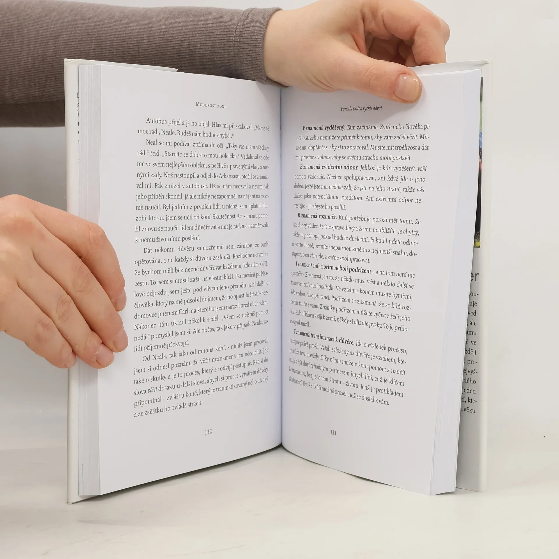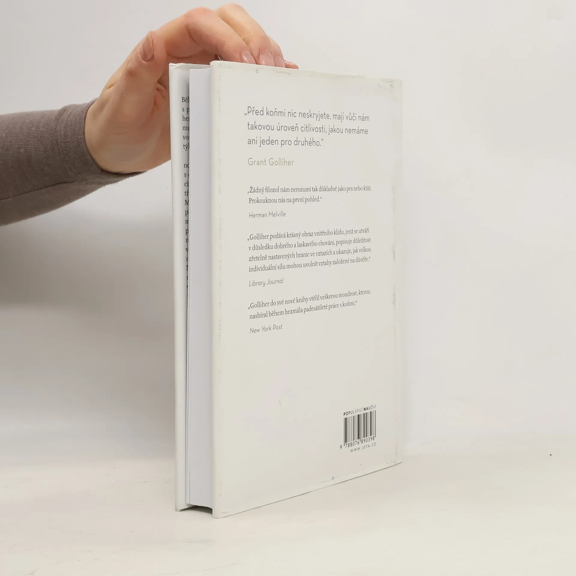 Všechno, co v životě opravdu potřebujete znát, se můžete naučit od koní.„Před koňmi nic neskryjete, mají vůči nám takovou úroveň citlivosti, jakou nemáme ani jeden pro druhého,“ říká zaříkávač koní a kouč Grant Golliher. Během své dlouholeté zkušenosti s prací s koňmi získal velké množství poznatků o komunikaci, nastavení hranic, férovosti, důvěře a respektu, které se týkají nejen koní, ale i lidí. K tomu, abychom druhým věnovali pozornost a chovali se k nim s citem, nepotřebujeme žádnou speciální dovednost ani kvalifikaci. Potřebujeme pokoru a ochotu učit se. Máme sklon nechat se snadno rozptýlit nebo se ponořit do vlastních myšlenek a pocitů. Unikají nám nápovědy, které máme přímo před očima. Nebo pokud si jich všimneme, vyložíme si je špatně, protože se na ně díváme filtrem vlastních emocí. Naladit se na druhé a věnovat jim dostatek pozornosti, abychom dokázali vycítit, co se děje pod povrchem, je stejně přirozené a odvěké jako soulad mezi koňmi, lidmi na jejich hřbetech a přírodou. Zaříkávání koní není magie. Jde jen o rozvíjení dobrovolného partnerství založeného na vzájemné důvěře a respektu. Jde o přístup, jehož osvojení bude k užitku každému, kdo chce lépe porozumět lidem a lidství, překonat trauma, zažívat plnohodnotnější vztahy a uvolnit nevyužitý potenciál svého života. Nejde o žádná kouzla. Stačí myslet jako kůň.