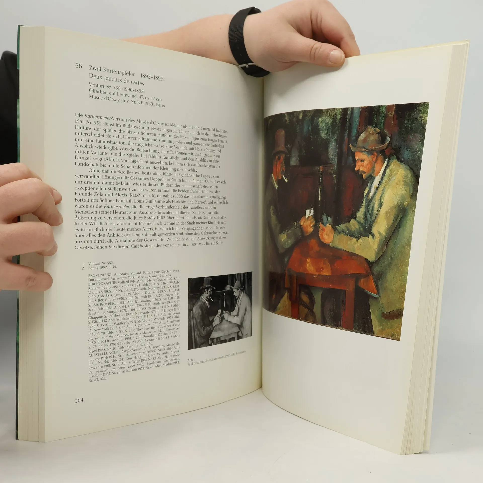 Mit J. Rewald (BA 1/87), R. Kendall (BA 3/90), H. Düchting (BA 5/89) und P. Frank (BA 1/87) sind Bibliotheken mit Literatur über Cézanne gut ausgestattet. Dieser Bild-Text-Band ist der Katalog der z.Z. in Tübingen gezeigten Gemäldeausstellung, der 1978 eine Ausstellung von Zeichnungen (BA 2/79, 294) und 1982 eine Aquarellausstellung (ID 9/82) vorangegangen waren. Alle 97 Exponate, ein repräsentativer Querschnitt durch Cézannes über 40jährige Schaffenszeit, sind im Katalog reproduziert, ausführlich beschrieben und kommentiert. Mit erläuternder Einführung, einem Beitrag zur Rezeptionsgeschichte, Bibliographie, Ausstellungs- und Katalogverzeichnis. - Empfohlen neben den o.a. Katalogen