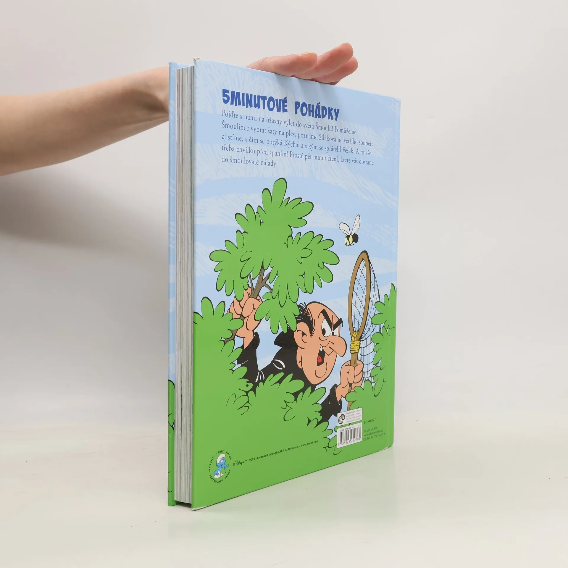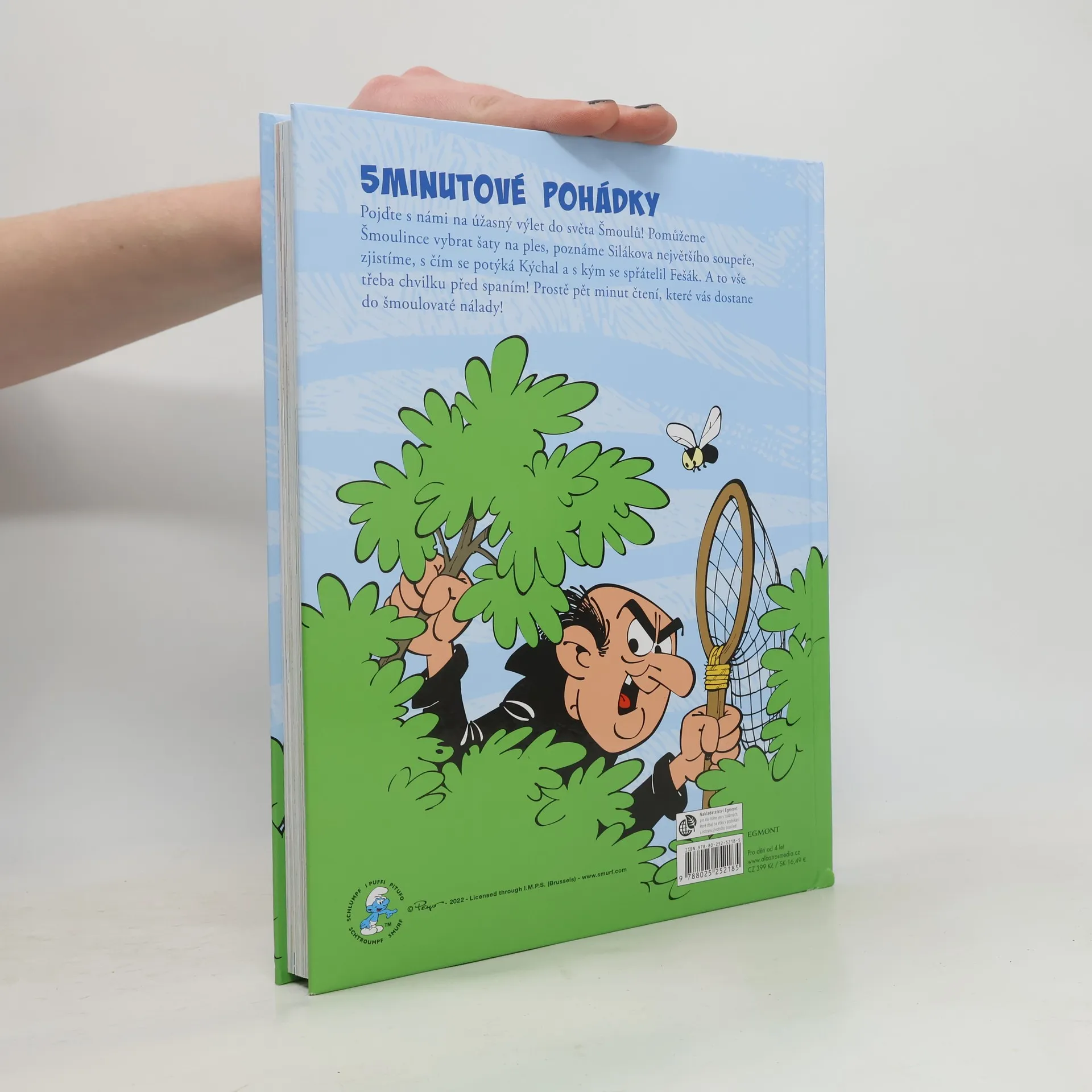 Spousta příběhů, po kterých se vám bude šmoulovatě usínat! Pojďte s námi na úžasný výlet do světa Šmoulů! Pomůžeme Šmoulince vybrat krásné šaty, poznáme Silákova největšího soupeře, zjistíme, s čím se potýká Kýchal a s kým se spřátelil Fešák. A to vše třeba chvilku před spaním! Prostě pět minut čtení, které vás dostane do šmoulovaté nálady!