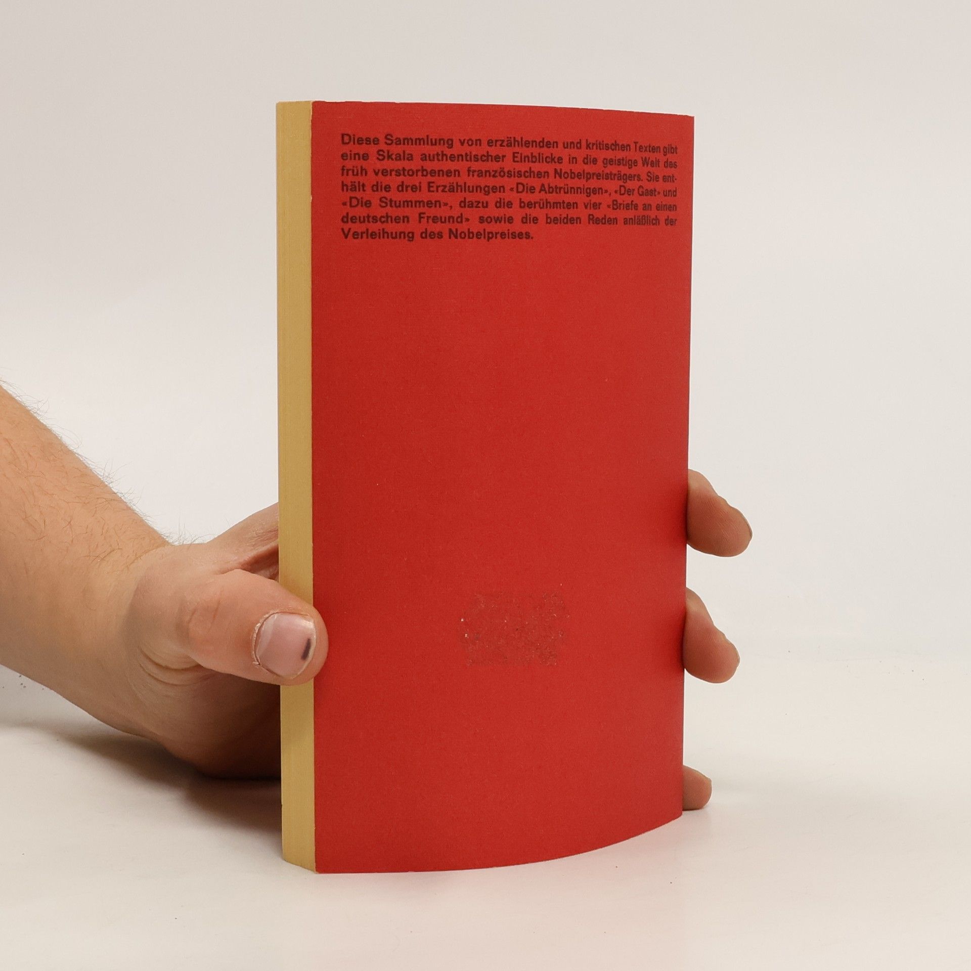 Gleichzeitig läßt die Aufgabe des Schriftstellers sich nicht von schwierigen Pflichten trennen. Seiner Bestimmung gemäß kann er sich heute nicht in den Dienst jener stellen, die Geschichte machen: er steht im Dienst derer, die sie erleiden. Diese Sammlung enthält die drei Erzählungen "Die Abtrünnigen", "Der Gast" und "Die Stummen", dazu die berühmten vier "Briefe an einen deutschen Freund" sowie die beiden Reden anläßlich der Verleihung des Nobelpreises.