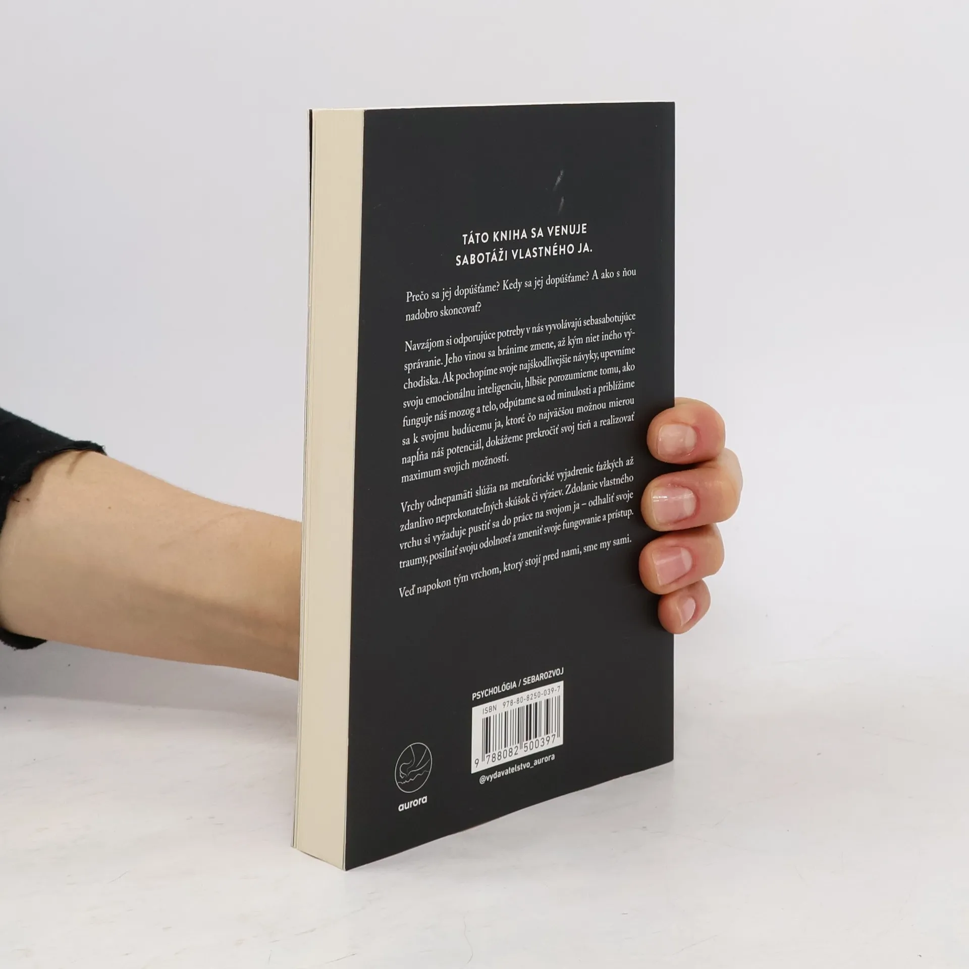 Prečo sa jej dopúšťame? Kedy sa jej dopúšťame? A ako s ňou nadobro skoncovať? Navzájom si odporujúce potreby v nás vyvolávajú sebasabotujúce správanie. Jeho vinou sa bránime zmene, až kým niet iného východiska. Ak pochopíme svoje najškodlivejšie návyky, upevníme svoju emocionálnu inteligenciu, hlbšie porozumieme tomu, ako funguje náš mozog a telo, odpútame sa od minulosti a priblížime sa k svojmu budúcemu ja, ktoré čo najväčšou možnou mierou napĺňa náš potenciál, dokážeme prekročiť svoj tieň a realizovať maximum svojich možností.Vrchy odnepamäti slúžia na metaforické vyjadrenie ťažkých až zdanlivo neprekonateľných skúšok či výziev. Zdolanie vlastného vrchu si vyžaduje pustiť sa do práce na svojom ja – odhaliť svoje traumy, posilniť svoju odolnosť a zmeniť svoje fungovanie a prístup. Veď napokon tým vrchom, ktorý stojí pred nami, sme my sami.