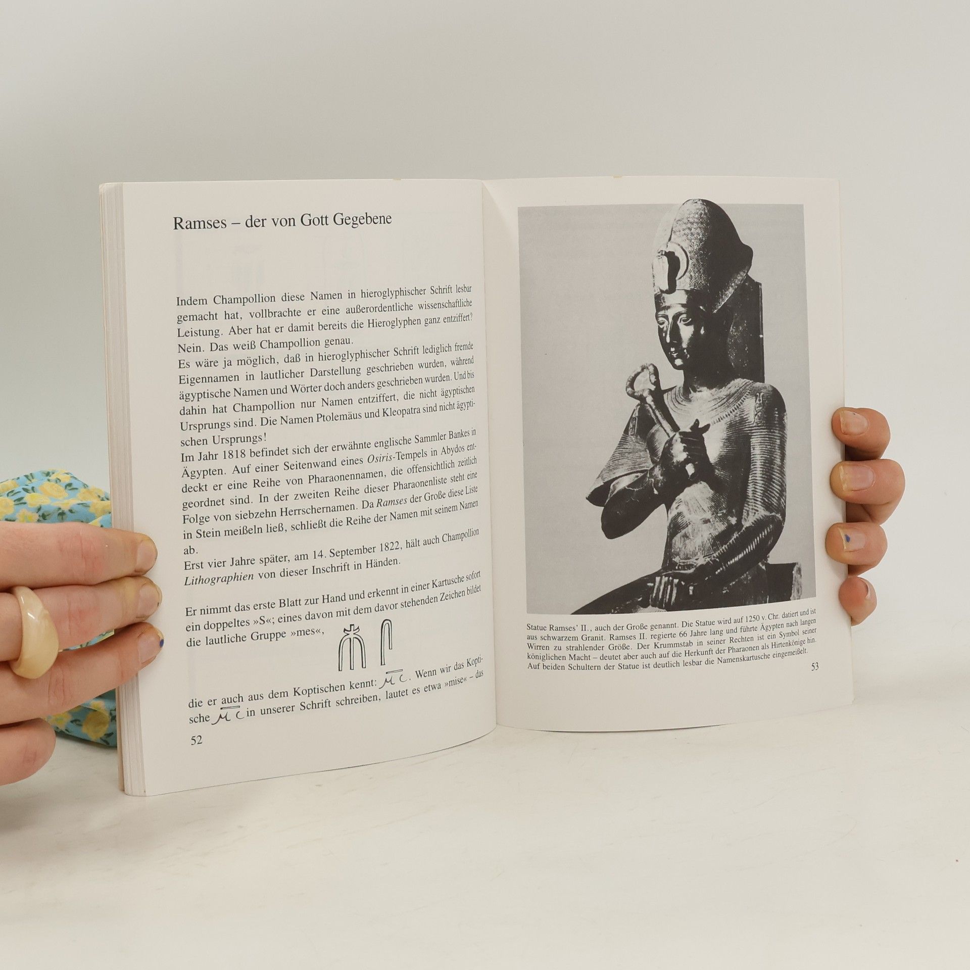Der reich illustrierte Band behandelt die Entzifferung der geheimnisvollen Hieroglyphen, die über Jahrhunderte vergessen waren. Nach Napoleons Eroberung Ägyptens gelang Jean-Francois Chamollion der Durchbruch. Karten, Worterklärungen und Literaturhinweise ergänzen das Werk, das auch für Jugendliche spannend ist.