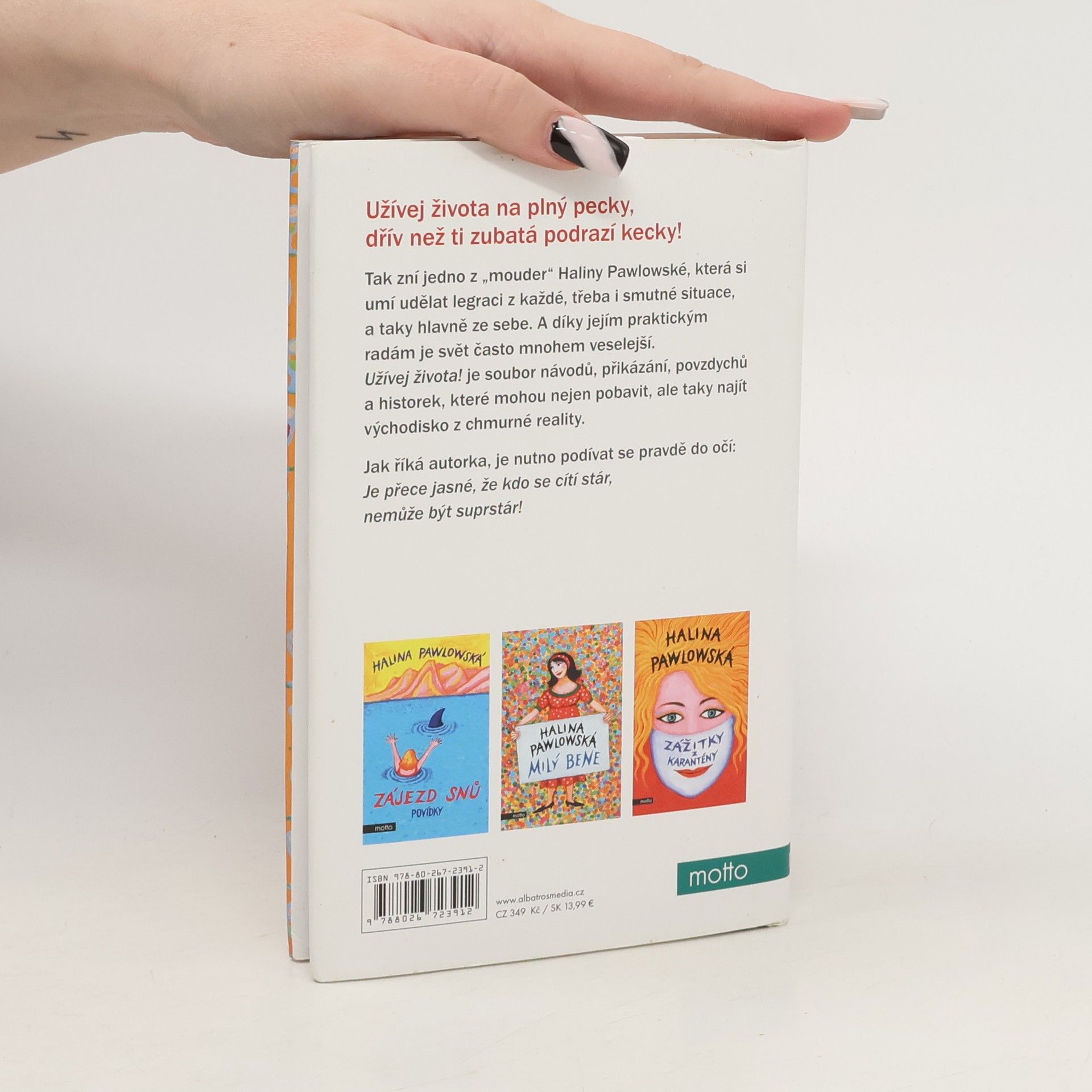 Užívej života na plný pecky, dřív než ti zubatá podrazí kecky!Tak zní jedno z pořekadel Haliny Pawlowské, která si umí udělat legraci z každé, třeba i smutné situace, a taky hlavně ze sebe. A díky jejím praktickým radám je svět často mnohem veselejší. Užívej života! je soubor návodů, přikázání, povzdychů a historek, které mohou nejen pobavit, ale taky najít východisko z chmurné reality. Jak říká autorka, je nutno podívat se pravdě do očí: Je přece jasné, že kdo je stár, nemůže být suprstár!
