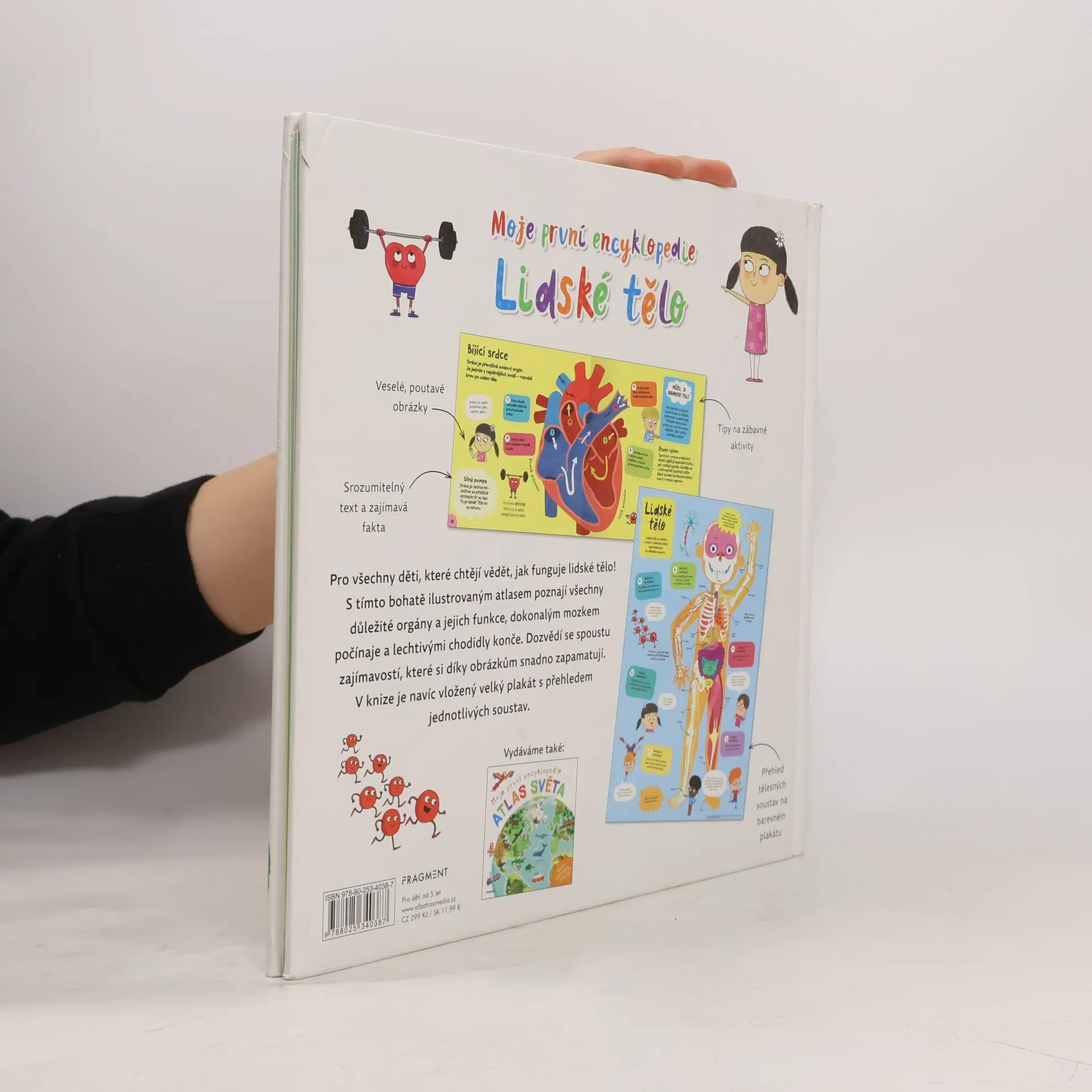 Názorný, bohatě ilustrovaný atlas seznamující s tím, jak funguje lidské tělo.Z knihy se děti dozvědí základní fakta o lidském těle - orgánech, soustavách, jak vzniká čich a chuť, jak proudí krev, jak cestuje potrava, jak z kojence vyroste dospělý a mnoho dalšího. Součástí knihy je plakát s přehledem jednotlivých soustav.