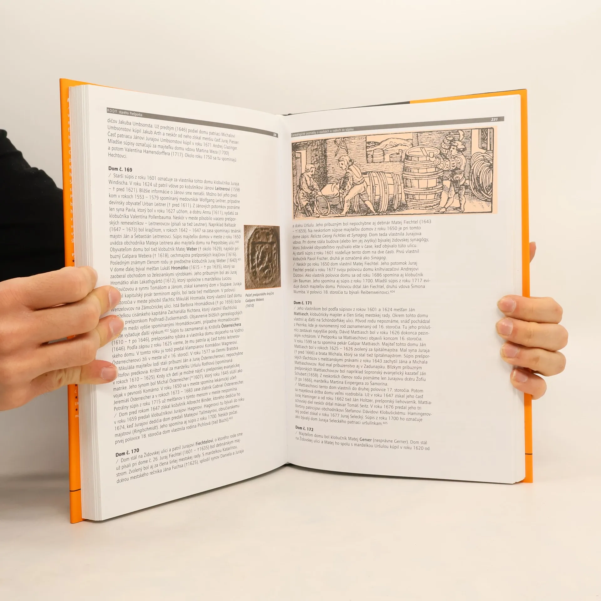 Genealogický rozbor obyvateľstva a topografia mesta podľa súpisu z roku 1624. Kapitoly: Súpis mešťanov a obyvateľov Prešporka z roku 1624, Prešporská mestská spoločnosť v 1. polovici 17. storočia, Genealogické poznatky o osobách a rodoch zo súpisu, Erbové pečate obyvateľov mesta, spomínaných v súpise z roku 1624, Prílohy, Poznámky, Register priezvísk, Nemecké resumé.