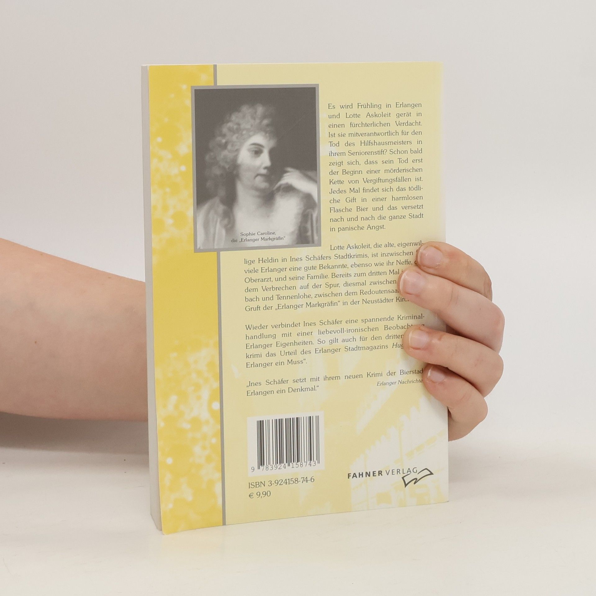 Im Frühling in Erlangen gerät Lotte Askoleit in Verdacht, für den Tod des Hilfshausmeisters im Seniorenstift verantwortlich zu sein. Sein Tod löst eine Serie von Vergiftungsfällen aus, die die Stadt in Angst versetzen. Lotte, die eigenwillige Heldin, ermittelt erneut in ihrem dritten Krimi.