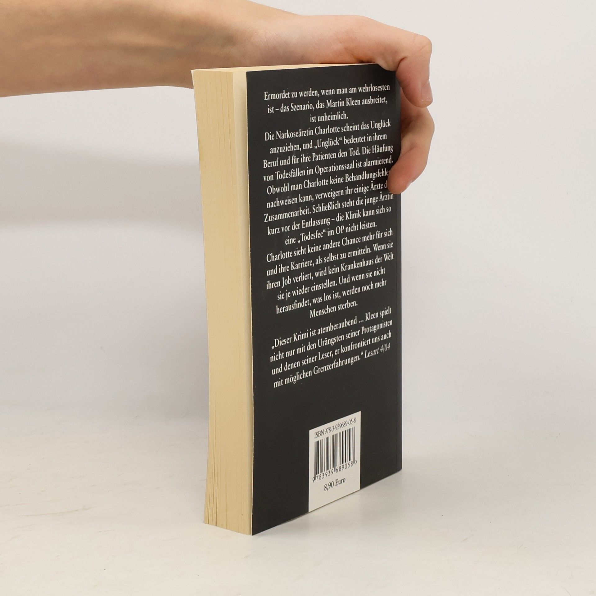 Ermordet zu werden, wenn man am wehrlosesten ist - das Szenario, das Martin Kleen ausbreitet, ist umnheimlich.§Die Narkoseärztin Charlotte scheint das Unglück anzuziehen, und "Unglück" bedeutet in ihrem Beruf und für ihre Patienten den Tod. Die Häufung von Todesfällen im Operationssaal ist alarmierend. Obwohl man Charlotte keine Behandlungsfehler nachweisen kann, verweigern ihr einige Ärzte die Zusammenarbeit. Schließlich steht die junge Ärztin kurz vor der Entlassung - die Klinik kann sich so eine "Todesfee" im OP nicht leisten.§Charlotte sieht keine andere Chance mehr für sich und ihre Karriere, als selbst zu ermitteln. Wenn sie ihren Job verliert, wird kein Krankenhaus der Welt sie je wieder einstellen. Und wenn sie nicht herausfindet, was los ist, werden noch mehr Menschen sterben.