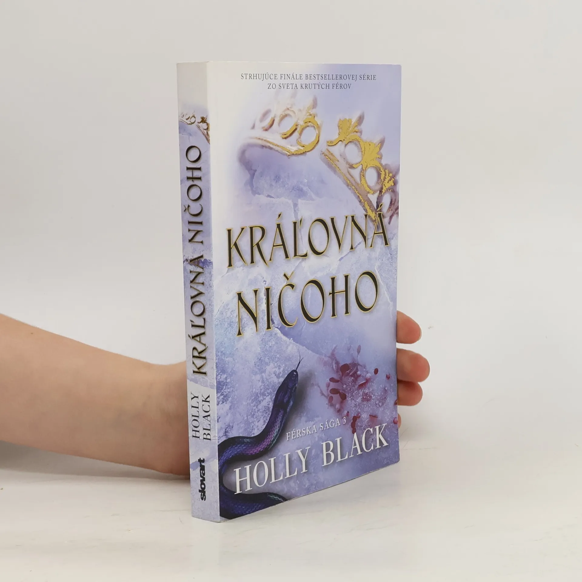 Reedícia úspešnej trilógie Férska sága a jej strhujúce vyvrcholenie! Moc sa dá získať veľmi jednoducho, zložitejšie je udržať si ju. Jude to zažila na vlastnej koži, keď sa výmenou za neobmedzené vládnutie vzdala kontroly nad skazeným kráľom Cardanom. Ako férska kráľovná vo vyhnanstve je Jude úplne bezmocná. Cardanova zrada ju vnútorne zožiera a čaká na vhodnú príležitosť, aby mohla získať späť všetko, o čo ju pripravil. Tá sa jej naskytne vo chvíli, keď sa jej dvojička, Taryn, ocitne v ohrození života. Jude si trúfne vrátiť sa na zradný férsky dvor, postaviť sa zoči-voči neutíchajúcim citom ku Cardanovi, a to všetko preto, aby zachránila svoju sestru. Elfham sa však medzičasom zmenil na nepoznanie. Schyľuje sa k vojne, a čím je Jude bližšie k nepriateľským líniám, tým väčšmi je zapletená do krvavej vojnovej politiky. Keď však začne účinkovať dávna kliatba, krajinu premkne panika a Jude si musí vybrať medzi vlastnými ambíciami a ľudskosťou...