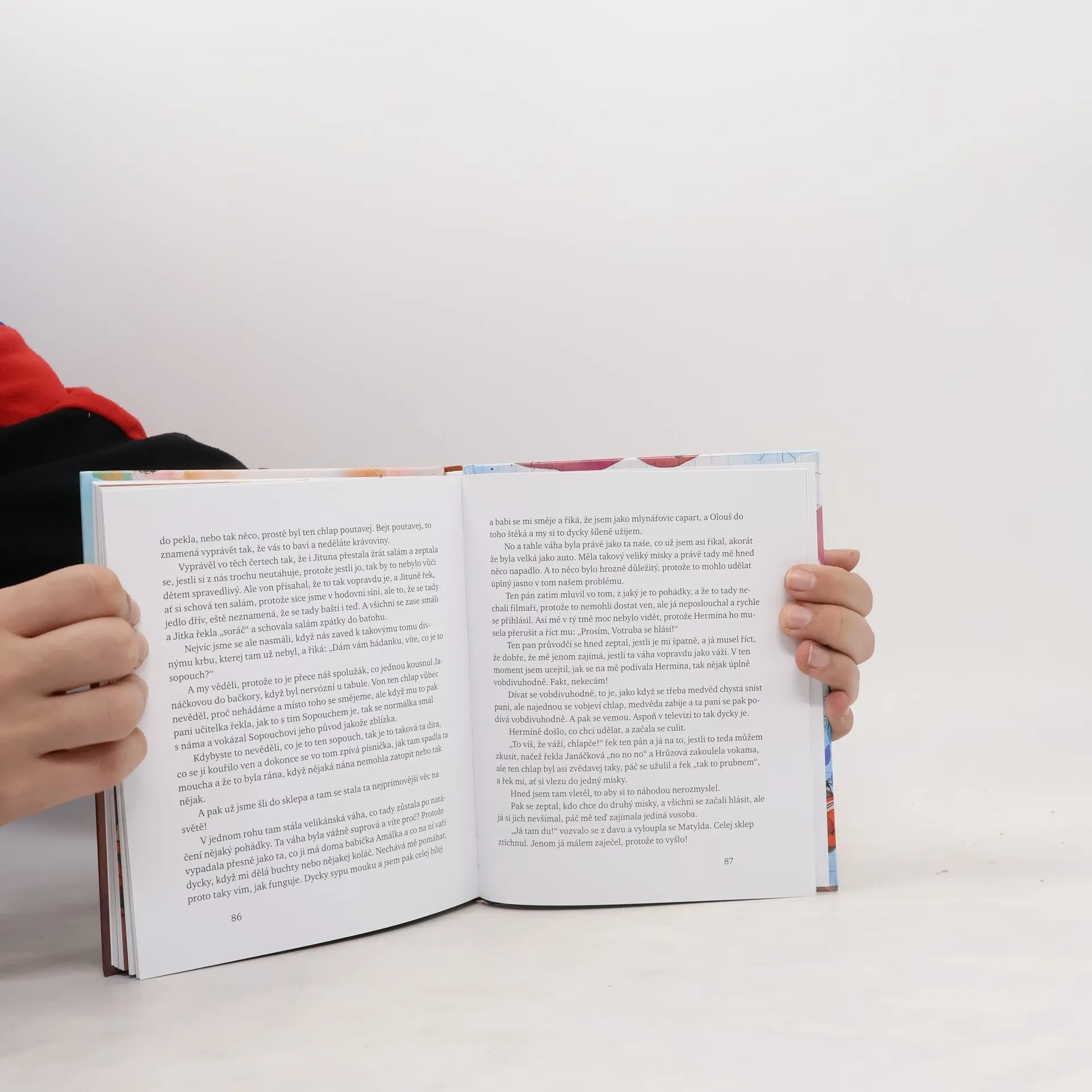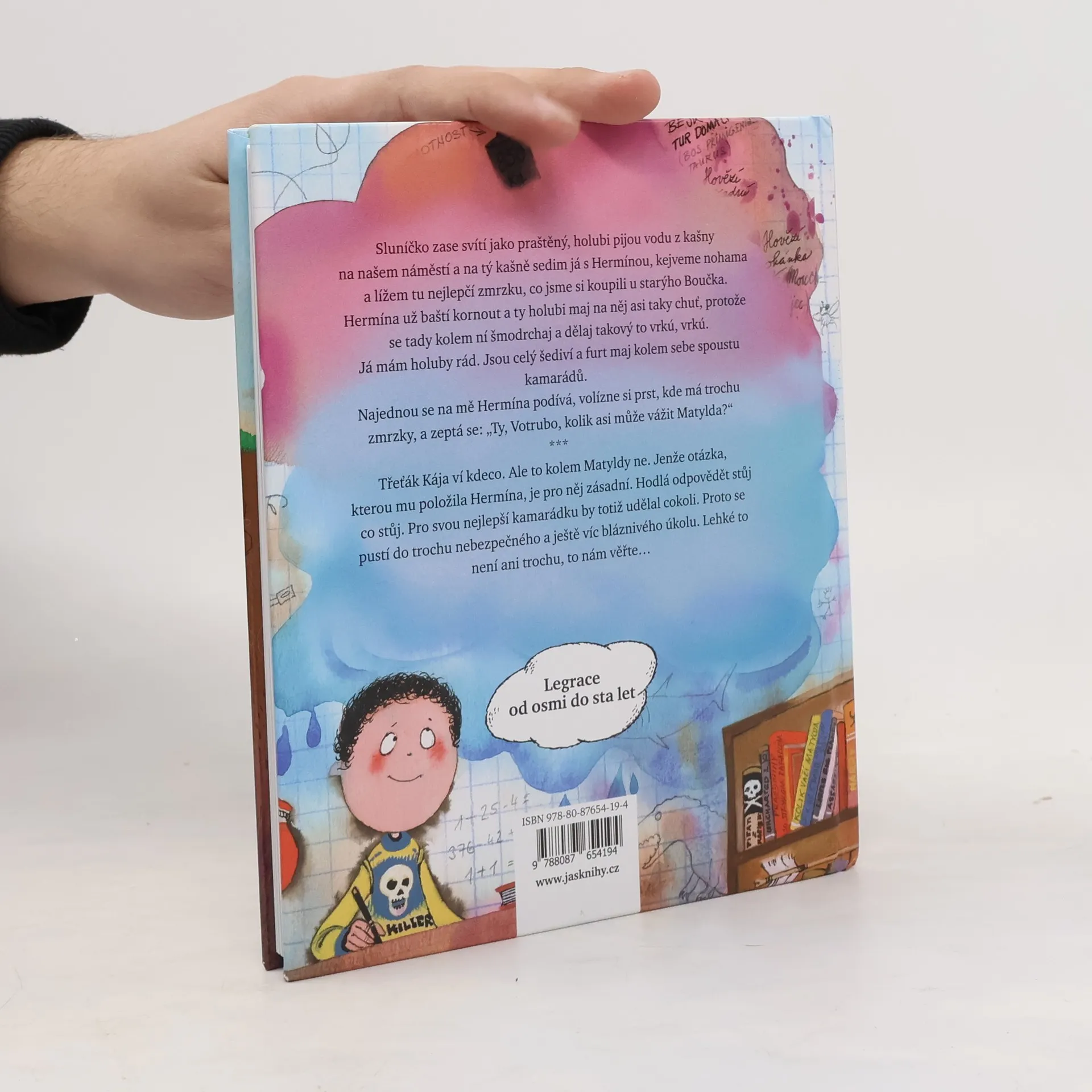 Sluníčko zase svítí jako praštěný, holubi pijou vodu z kašny na našem náměstí a na tý kašně sedim já s Hermínou, kejveme nohama a lížem tu nejlepčí zmrzku, co jsme si koupili u starýho Boučka. Hermína už baští kornout a ty holubi maj na něj asi taky chuť, protože se tady kolem ní šmodrchaj a dělaj takový to vrkú, vrkú. Já mám holuby rád. Jsou celý šediví a furt maj kolem sebe spoustu kamarádů. Najednou se na mě Hermína podívá, volízne si prst, kde má trochu zmrzky, a zeptá se: „Ty, Votrubo, kolik asi může vážit Matylda?“ *** Třeťák Kája umí kdeco. Vládne skvělou dětštinou a dokonale komentuje všechno, co vidí. Ale to o Matyldě neví. Jenže otázka, kterou mu položila spolužačka Hermína, je pro něj zásadní. Hodlá ji zodpovědět stůj co stůj. Pro svou nejlepší kamarádku by totiž udělal cokoli. Proto se pustí do trochu nebezpečného a ještě víc bláznivého úkolu. Lehké to nemá ani trochu, tomu můžete věřit…
