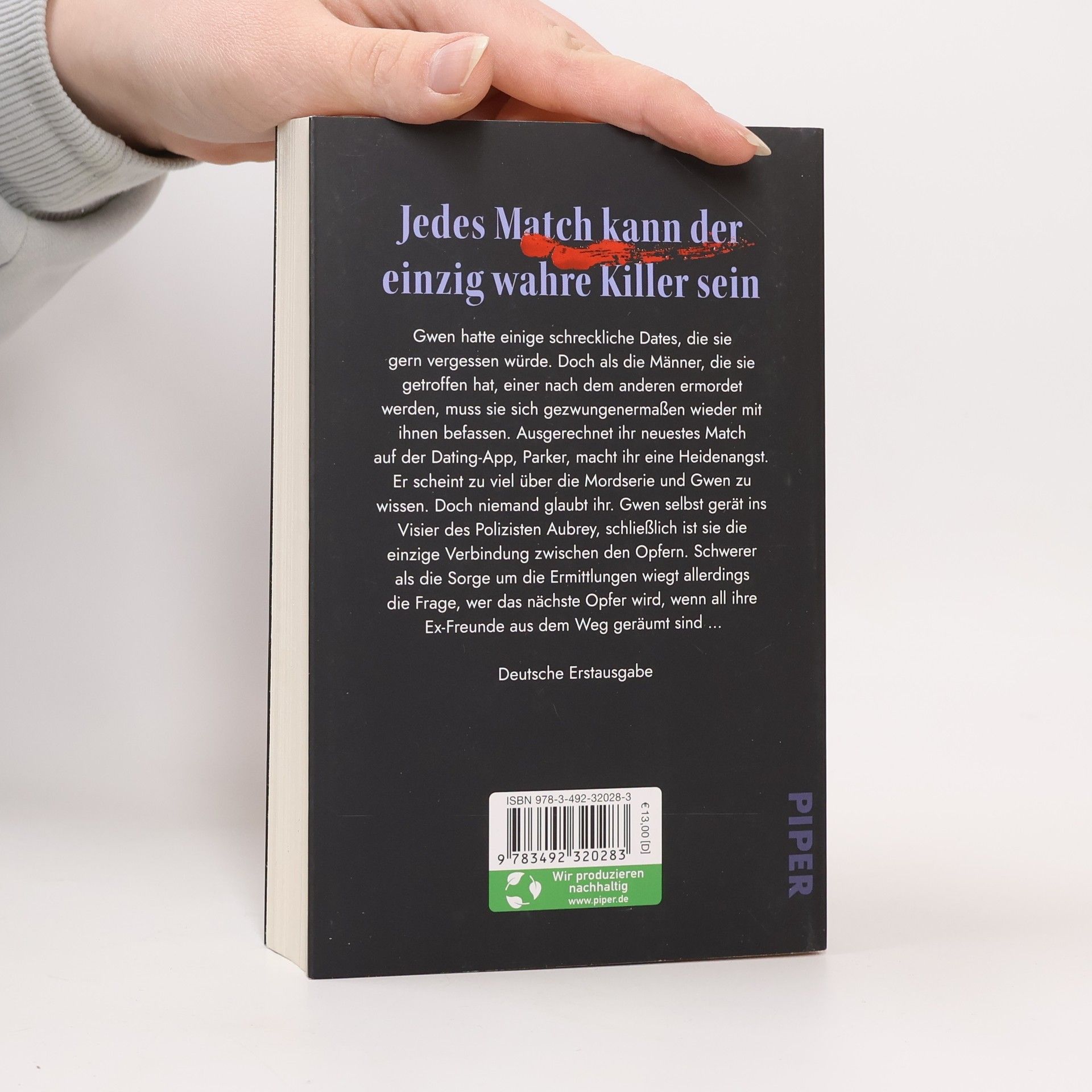 Gwen sieht sich mit schrecklichen Dates konfrontiert, als ihre Ex-Freunde nacheinander ermordet werden. Ihr neuestes Match, Parker, weckt Misstrauen, da er zu viel über die Mordserie weiß. Während sie von der Polizei verdächtigt wird, fragt sie sich, wer das nächste Opfer sein könnte. Ein fesselndes Thriller-Debüt von L.M. Chilton.