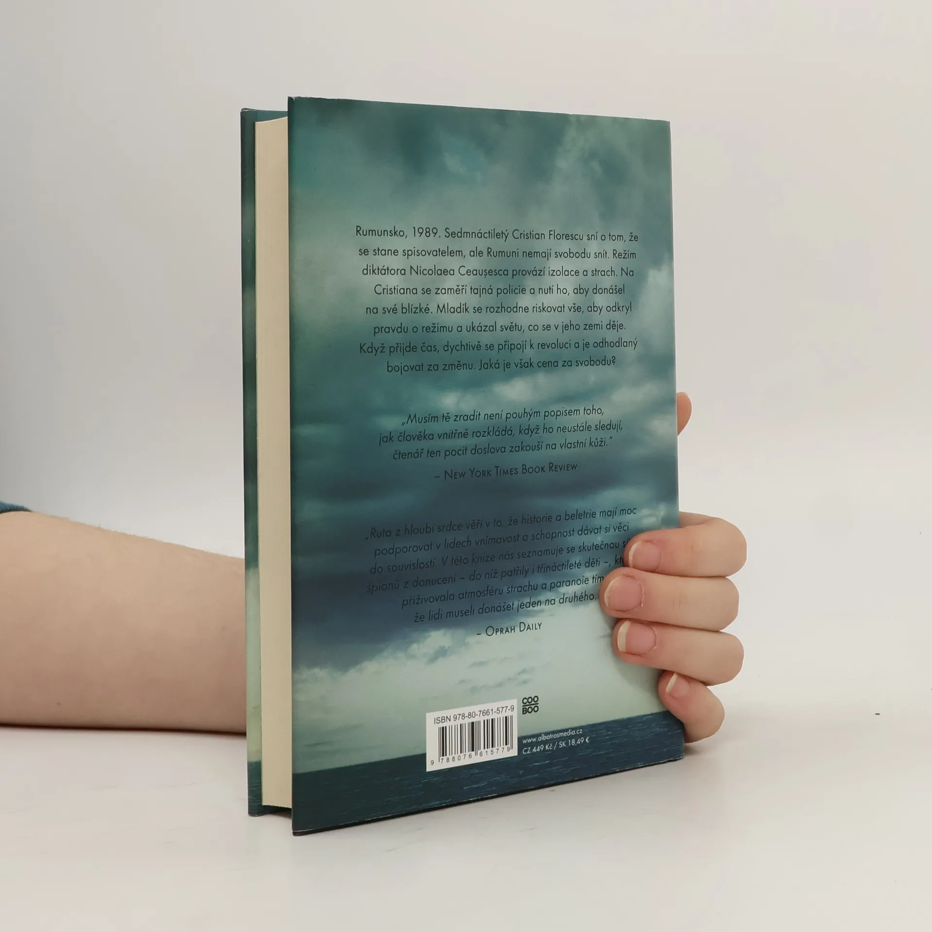 Nikomu nevěř, nic neříkej. Strhující román od autorky bestselleru V šedých tónech. Rumunsko, 1989. Sedmnáctiletý Cristian Florescu sní o tom, že se stane spisovatelem, ale Rumuni nemají svobodu snít. Režim diktátora Nicolaea Ceauşesca provází izolace a strach. Na Cristiana se zaměří tajná policie a nutí ho, aby donášel na své blízké. Mladík se rozhodne riskovat vše, aby odkryl pravdu o režimu a ukázal světu, co se v jeho zemi děje. Když přijde čas, dychtivě se připojí k revoluci a je odhodlaný bojovat za změnu. Jaká je však cena za svobodu?