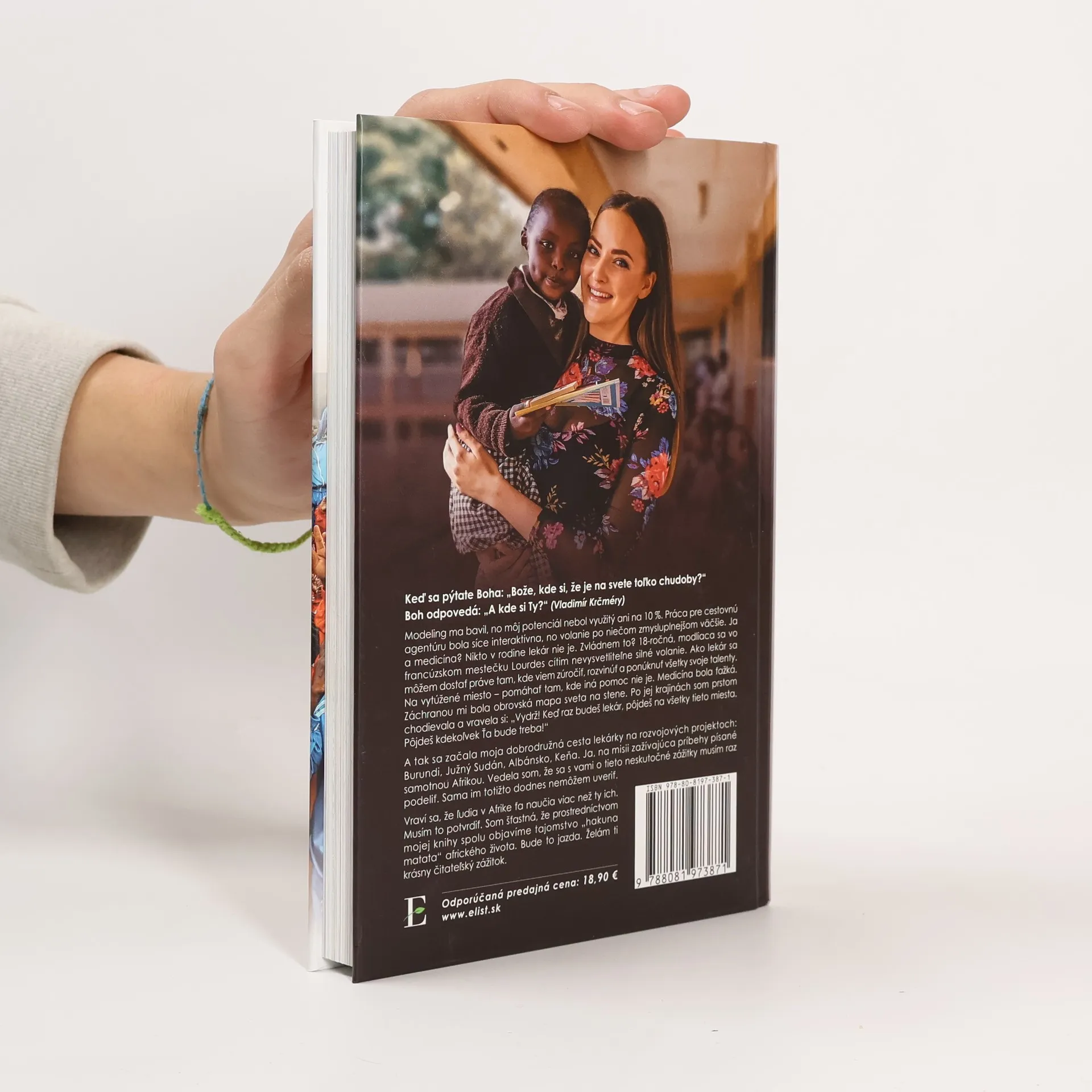 Modeling ma bavil, no môj potenciál nebol využitý ani na 10 %. Práca pre cestovnú agentúru bola síce interaktívna, no volanie po niečom zmysluplnejšom väčšie. Ja a medicína? Nikto v rodine lekár nie je. Zvládnem to? 18-ročná, modliaca sa vo francúzskom mestečku Lourdes cítim nevysvetliteľne silné volanie. Ako lekár sa môžem dostať práve tam, kde viem zúročiť, rozvinúť a ponúknuť všetky svoje talenty. Na vytúžené miesto – pomáhať tam, kde iná pomoc nie je. Medicína bola ťažká. Záchranou mi bola obrovská mapa sveta na stene. Po jej krajinách som prstom chodievala a vravela si: „Vydrž! Keď raz budeš lekár, pôjdeš na všetky tieto miesta. Pôjdeš kdekoľvek Ťa bude treba!“A tak sa začala moja dobrodružná cesta lekárky na rozvojových projektoch: Burundi, Južný Sudán, Albánsko, Keňa. Ja, na misii zažívajúca príbehy písané samotnou Afrikou. Vedela som, že sa s vami o tieto neskutočné zážitky musím raz podeliť. Sama im totižto dodnes nemôžem uveriť.Vraví sa, že ľudia v Afrike ťa naučia viac než ty ich. Musím to potvrdiť. Som šťastná, že prostredníctvom mojej knihy spolu objavíme tajomstvo „hakuna matata“ afrického života. Bude to jazda. Želám ti krásny čitateľský zážitok.
