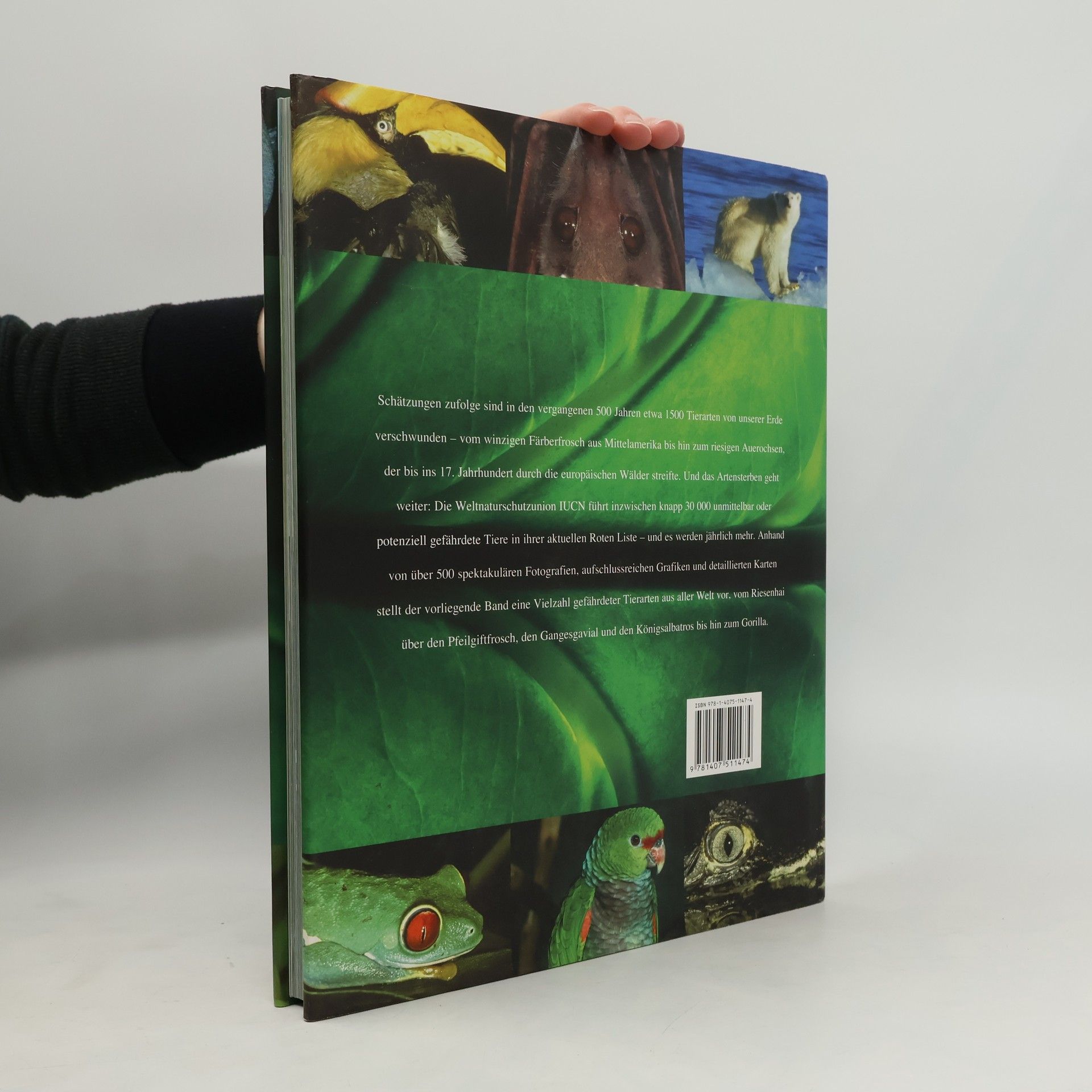 Schätzungen zufolge sind in den vergangenen 500 Jahren etwa 1.500 Tierarten von unserer Erde verschwunden - vom winzigen Färberfrosch aus Mittelamerika bis hin zum riesigen Auerochsen, der bis ins 17. Jahrhundert durch die europäischen Wälder streifte. Und das Artensterben geht weiter: Die Weltnaturschutzunion IUCN führt inzwischen knapp 30.000 unmittelbar oder potenziell gefährdete Tiere in ihrer aktuellen Roten Liste - und es werden jährlich mehr.§§Anhand von über 500 spektakulären Fotografien, aufschlussreichen Grafiken und detaillierten Karten stellt der vorliegende Band eine Vielzahl gefährdeter Tierarten aus aller Welt vor, vom Riesenhai über den Pfeilgiftfrosch, den Gangesgavial und den Königsalbatros bis hin zum Gorilla.