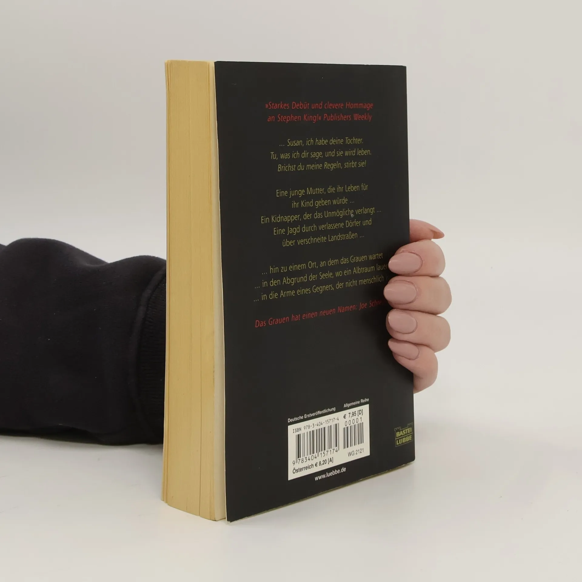 Eine junge Mutter muss sich den Forderungen eines Kidnappers fügen, um das Leben ihrer Tochter zu retten. Die Geschichte führt durch verlassene Dörfer und verschneite Straßen zu einem Ort des Schreckens und der Dunkelheit, wo ein übernatürlicher Gegner auf sie wartet. Joe Schreiber bringt das Grauen.