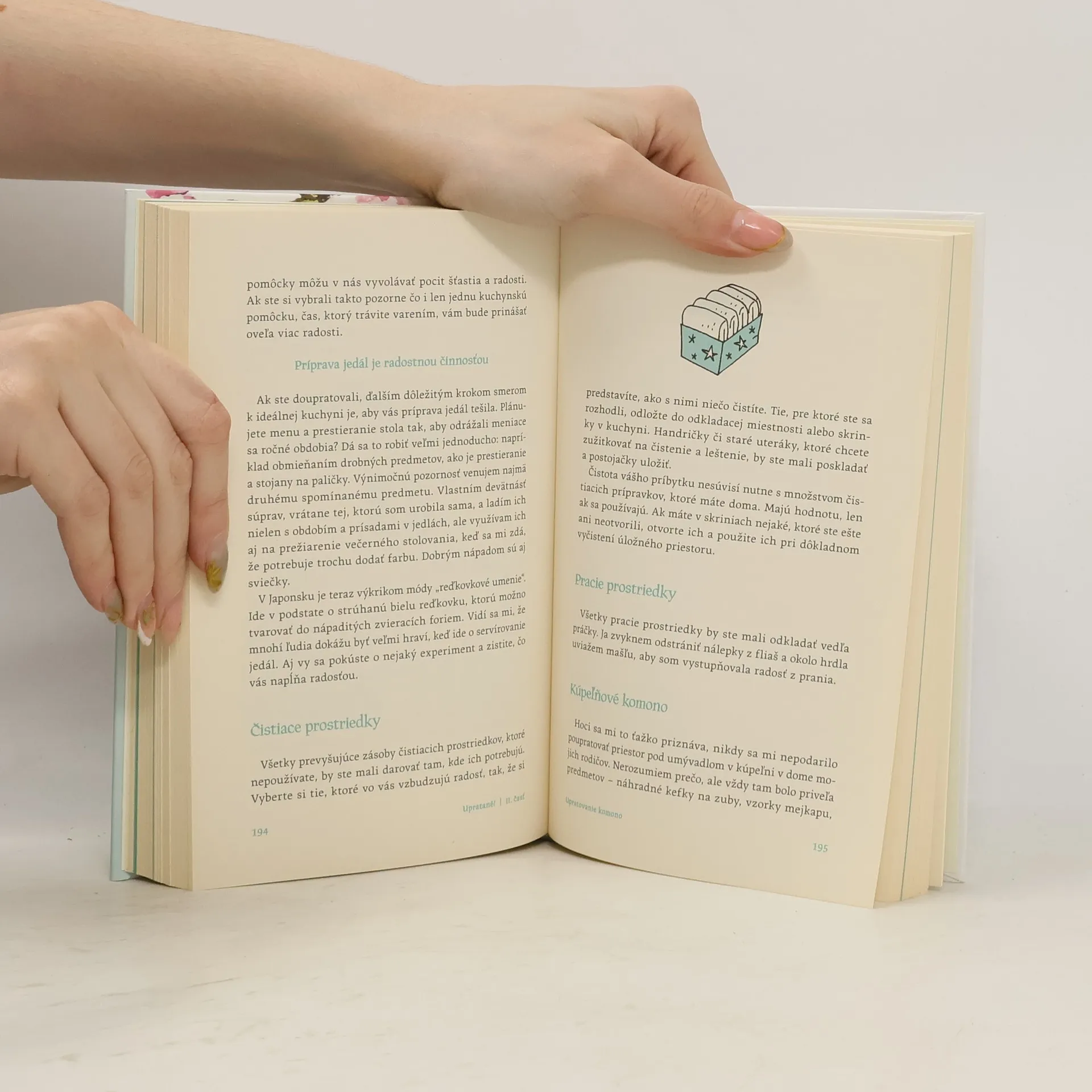Po svetovom úspechu knihy Kúzelné upratovanie prichádza Marie Kondo s bohato ilustrovanou novinkou, kde prináša podrobné tipy, ako si vytvoriť pekný a šťastný domov. Ilustrácie ukazujú, ako si usporiadať šatník, zásuvky či police, zároveň predstavujú unikátnu skladaciu metódu Marie Kondo, ako správne zložiť rôzne typy oblečenia. Kniha nás sprevádza všetkými miestnosťami aj všetkými kategóriami predmetov, od oblečenia cez knihy, kozmetiku, dokumenty až po predmety s citovou hodnotou. Detailný sprievodca je návodom na radostnejší život s vecami, ktoré milujeme.