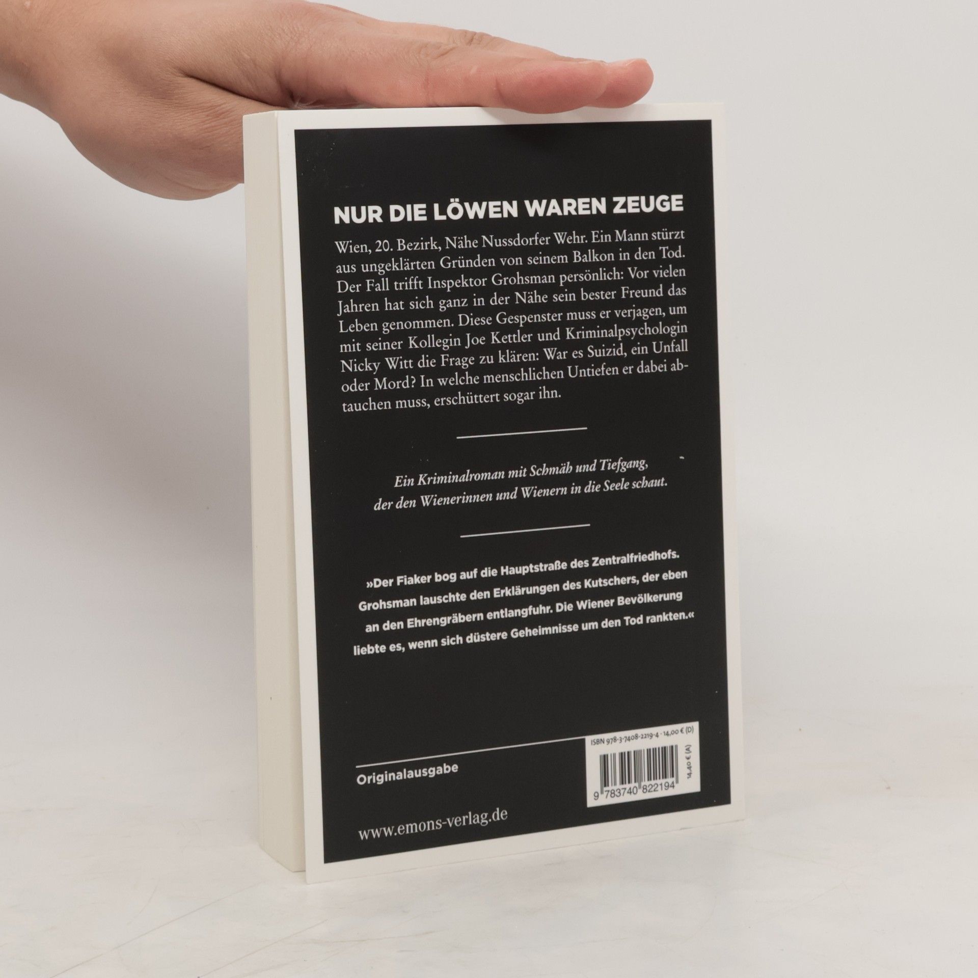 Ein Feel-Good-Krimi, der tief in die Seele der Wienerinnen und Wiener blickt. Inspektor Grohsman ermittelt im Fall eines mysteriösen Todes und muss sich dabei mit seiner eigenen Vergangenheit auseinandersetzen. Gemeinsam mit seiner Kollegin und einer Kriminalpsychologin sucht er nach der Wahrheit: Suizid, Unfall oder Mord?