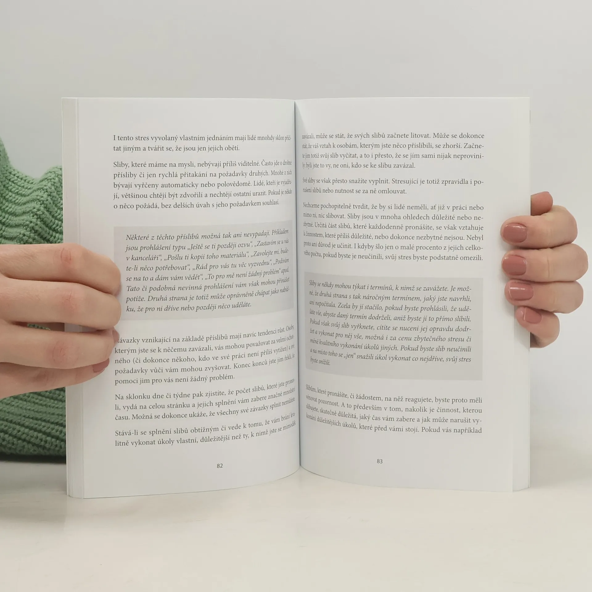 Stres patří mezi nejhorší moderní zabijáky, vyvolává a zhoršuje řadu chorob, urychluje stárnutí a přispívá k mnoha obtížím. Publikace se zaměřuje na pracovní stres, jeho časté příčiny a způsoby, jak s ním účinně bojovat. Ukazuje, že stres často nevzniká pouze z práce, šéfa či kolegů, ale také z našich vlastních myšlenek a reakcí. Mnozí z nás se stresují minulostí, kterou už nemůžeme ovlivnit, nebo budoucností, která pravděpodobně nikdy nenastane. Příčiny stresu zahrnují nízkou důvěru ve vlastní schopnosti, perfekcionismus, úzkost, pocity viny a nadměrnou vztahovačnost. Kniha nabízí 44 praktických tipů, jak nadměrnému stresu předejít. Zaměřuje se na odstranění zlozvyků, které přispívají ke stresu, a na vytváření nových návyků, které pomáhají čelit stresovým situacím. Tyto rady se týkají jak pracovních zvyků, tak mentálních technik, které umožňují lépe reagovat na stres. Většina doporučení vyžaduje pouze zamyšlení nad vlastními zvyky a provedení drobných změn. Kniha je určena nejen těm, kteří stres na pracovišti pravidelně zažívají, ale i vedoucím, kteří mohou stres spoluvytvářet.