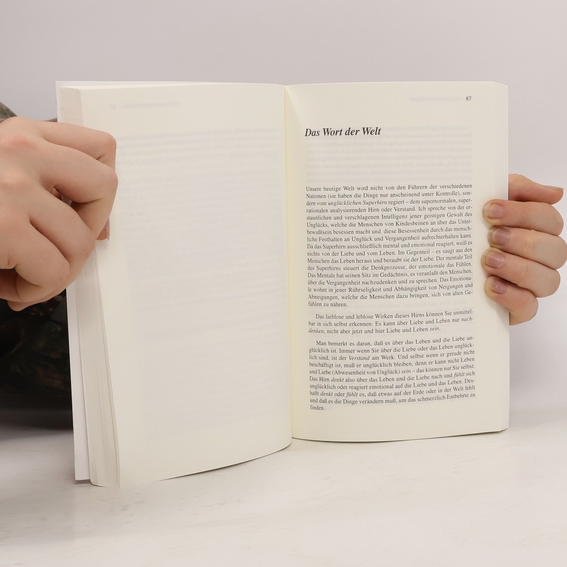 Acht Aufsätze thematisieren die ständige Unzufriedenheit der Menschheit und die schmerzhafte Konfrontation mit der Wahrheit des Lebens. Dieser Prozess kann wie Sterben erscheinen, führt jedoch zur Entstehung eines neuen Bewusstseins.