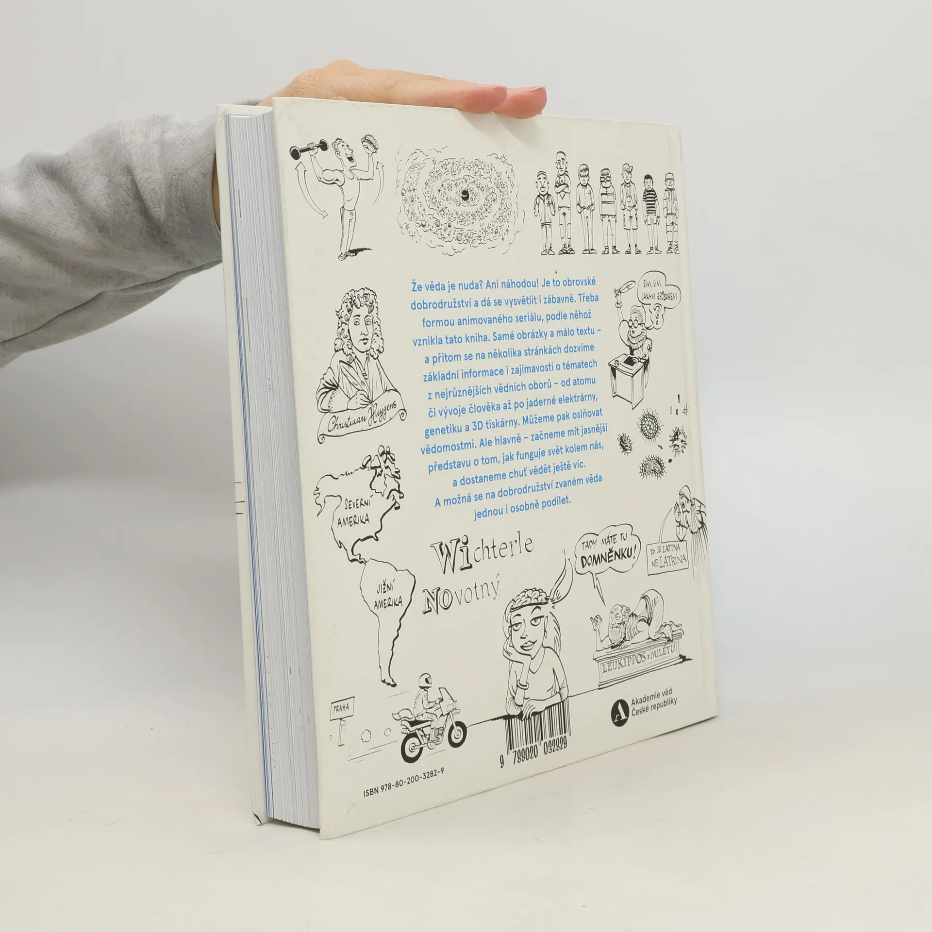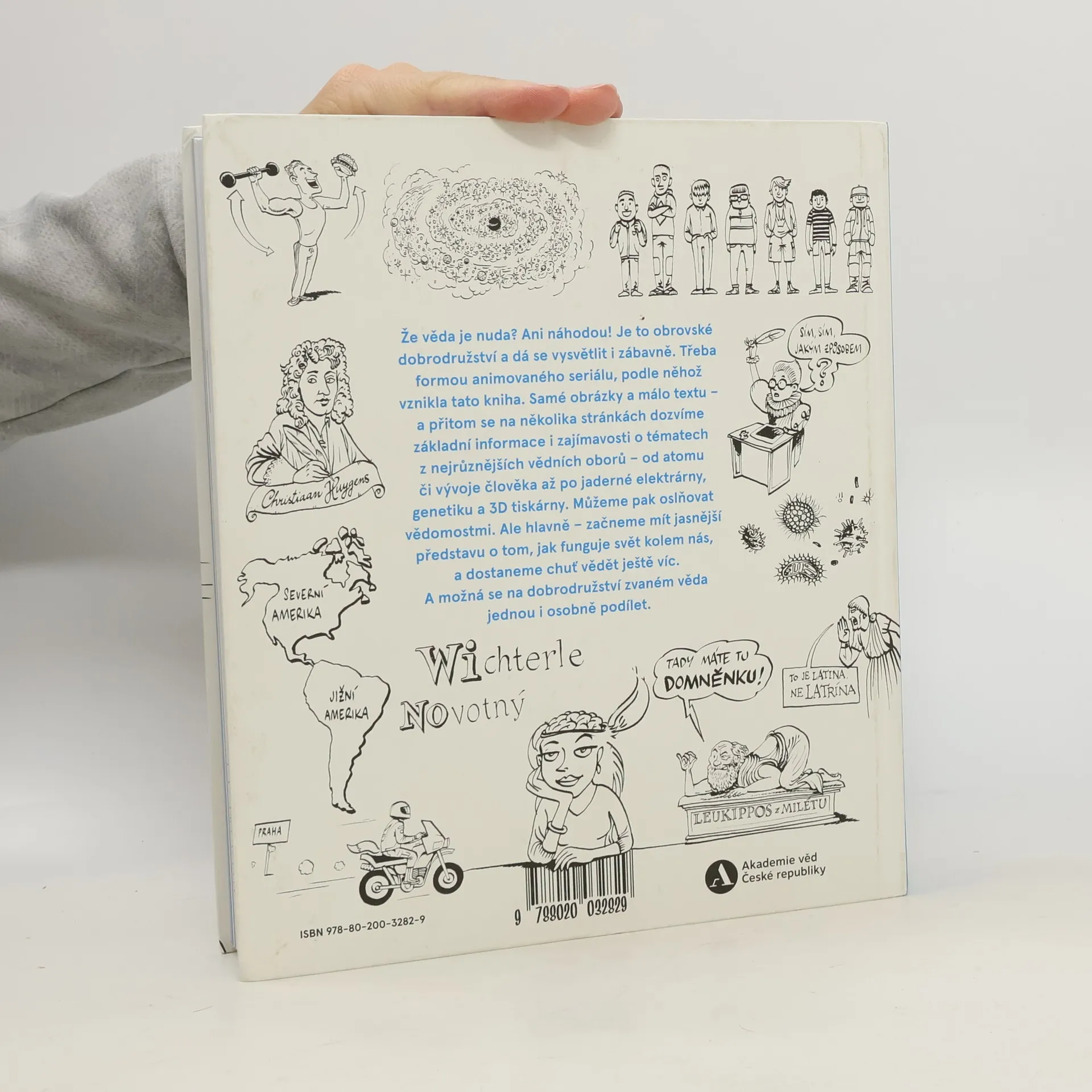 Rozsvítit žárovku, polknout prášek, zapnout počítač – to všechno nám připadá docela normální. Jenže za každou z těch věcí se skrývají geniální vědecké objevy a vynálezy. Že věda je nuda? Ani náhodou! Je to obrovské dobrodružství a dá se vysvětlit i tak, aby nás bavilo – třeba formou animovaného seriálu, podle něhož vznikla tato knížka. Samé obrázky a málo textu – a přitom se na několika stránkách dozvíme základní informace i zajímavosti o celé řadě témat z nejrůznějších vědních oborů – od atomu, vzniku vesmíru či vývoje člověka až po jaderné elektrárny, genetiku a 3D tiskárny. Díky této publikaci začneme mít jasnější představu o tom, jak funguje svět kolem nás, a dostaneme chuť vědět ještě víc. A možná se na tom dobrodružství zvaném věda jednou i osobně podílet.