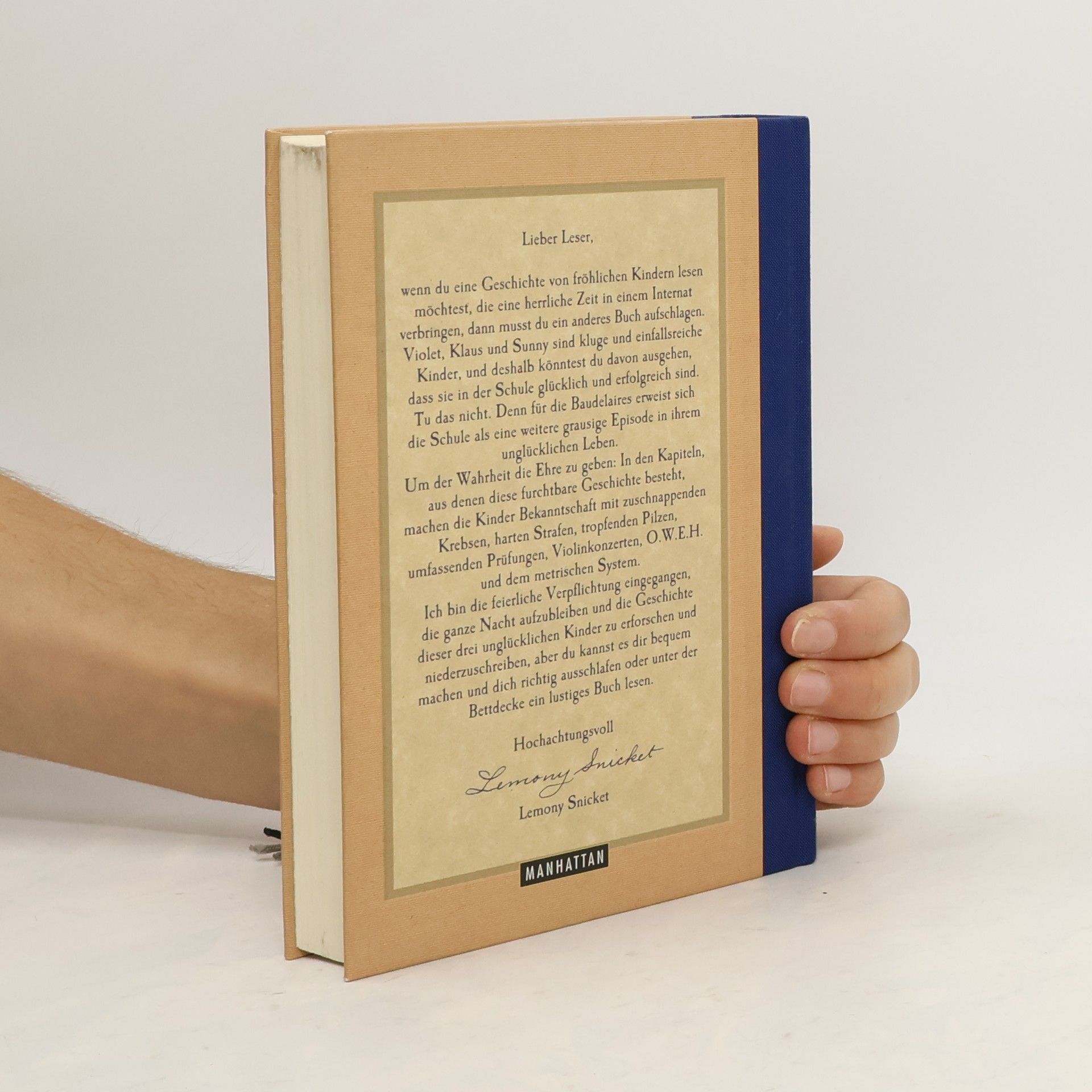 Das Unglück nimmt seinen Lauf - der scheußliche Graf Olaf ist den drei Baudelaire-Waisen weiterhin dicht auf den Fersen, um ihnen ihr Erbe abzujagen. Erst spürt er sie in der Sägemühle Glück & Partner auf, wo Violet, Klaus und Sunny wie die Sklaven schuften müssen. Dann kommen die armen Kinder in ein grauenhaftes Internat, in dem sie nicht nur vom zynischen stellvertretenden Direktor Nero schikaniert, sondern auch von Graf Olaf drangsaliert werden, der sich als Sportlehrer Dschingis in die Schule eingeschlichen hat. Und schließlich werden sie von Mr und Mrs Elend adoptiert, zwei ahnungslosen Erwachsenen, die weder willens noch in der Lage sind, die drei Waisenkinder vor Graf Olaf, diesmal in der Rolle eines Auktionators im Nadelstreifenanzug, zu schützen. Wir fragen Sie: Wer will das lesen? Wer will davon erfahren, wie drei unschuldige, wohlerzogene und charmante Kinder vergeblich vor den teuflischen Intrigen eines widerlichen, geldgierigen und skrupellosen Bösewichtes zu entkommen versuchen? Gleich drei Bände voller betrüblicher Ereignisse auf einmal: Wenn das keine Zumutung ist. Aber sagen Sie später nicht, wir hätten Sie nicht gewarnt!
