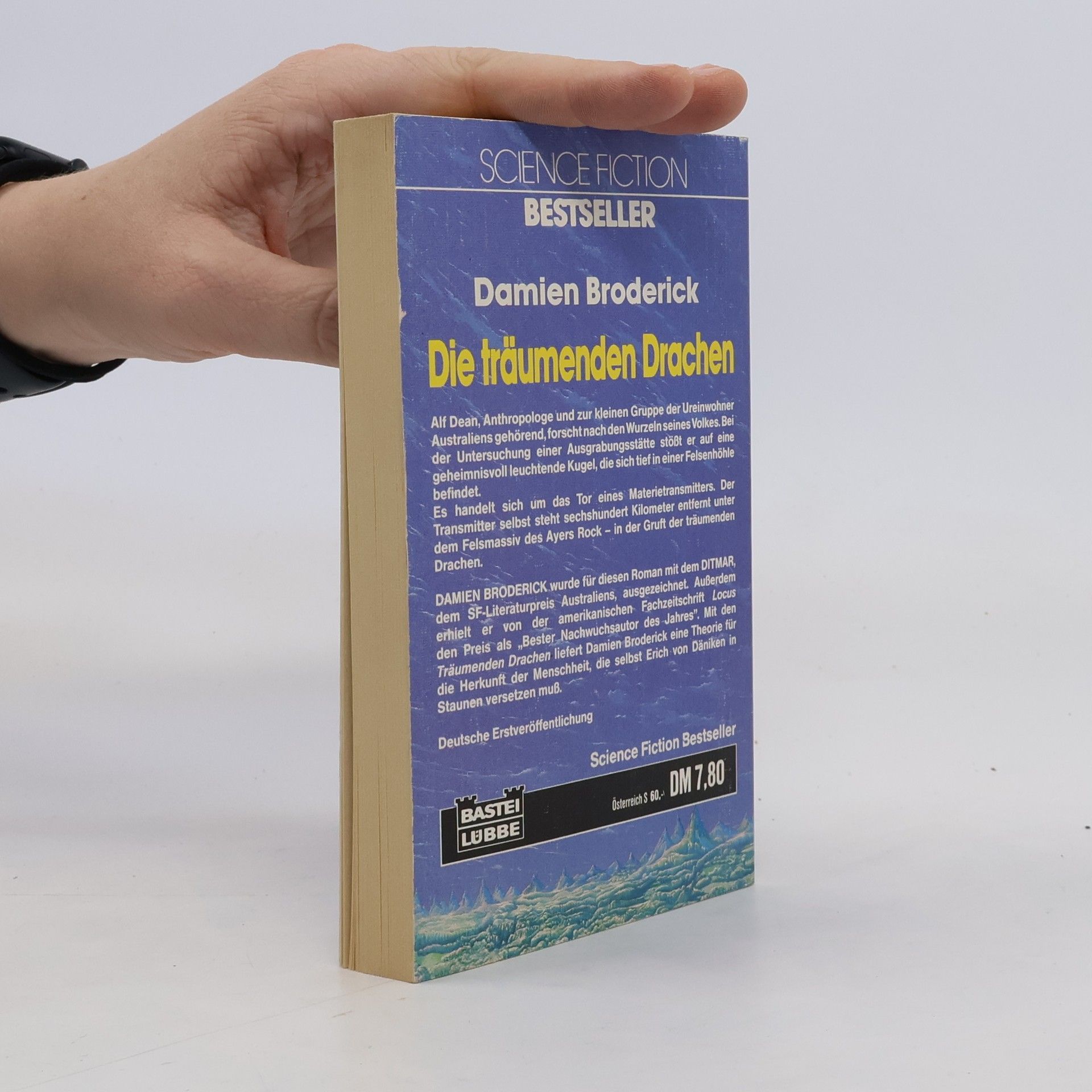 Damien Broderick Die träumenden Drachen: Alf Dean, Anthropologe und zur kleinen Gruppe der Ureinwohner Australiens gehörend, forscht nach den Wurzeln seines Volkes. Bei der Untersuchung einer Ausgrabungsstätte stößt er auf eine geheimnisvoll leuchtende Kugel, die sich tief in einer Felsenhöhle befindet. Es handelt sich um das Tor eines Materietransmitters. Der Transmitter selbst steht sechshundert Kilometer entfernt unter dem Felsmassiv des Ayers Rock - in der Gruft der träumenden Drachen. DAMIEN BRODERICK wurde für diesen Roman mit dem DITMAR, dem SF-Literäturpreis Australiens, ausgezeichnet. Außerdem erhielt er von der amerikanischen Fachzeitschrift Locus den Preis als „Bester Nachwuchsautor des-Jahres". Mit den Träumenden Drachen liefert Damien Broderick eine Theorie für die Herkunft der Menschheit, die selbst Erich von Däniken in Staunen versetzen muß. Deutsche Erstveröffentlichung Science Fiction Bestseller