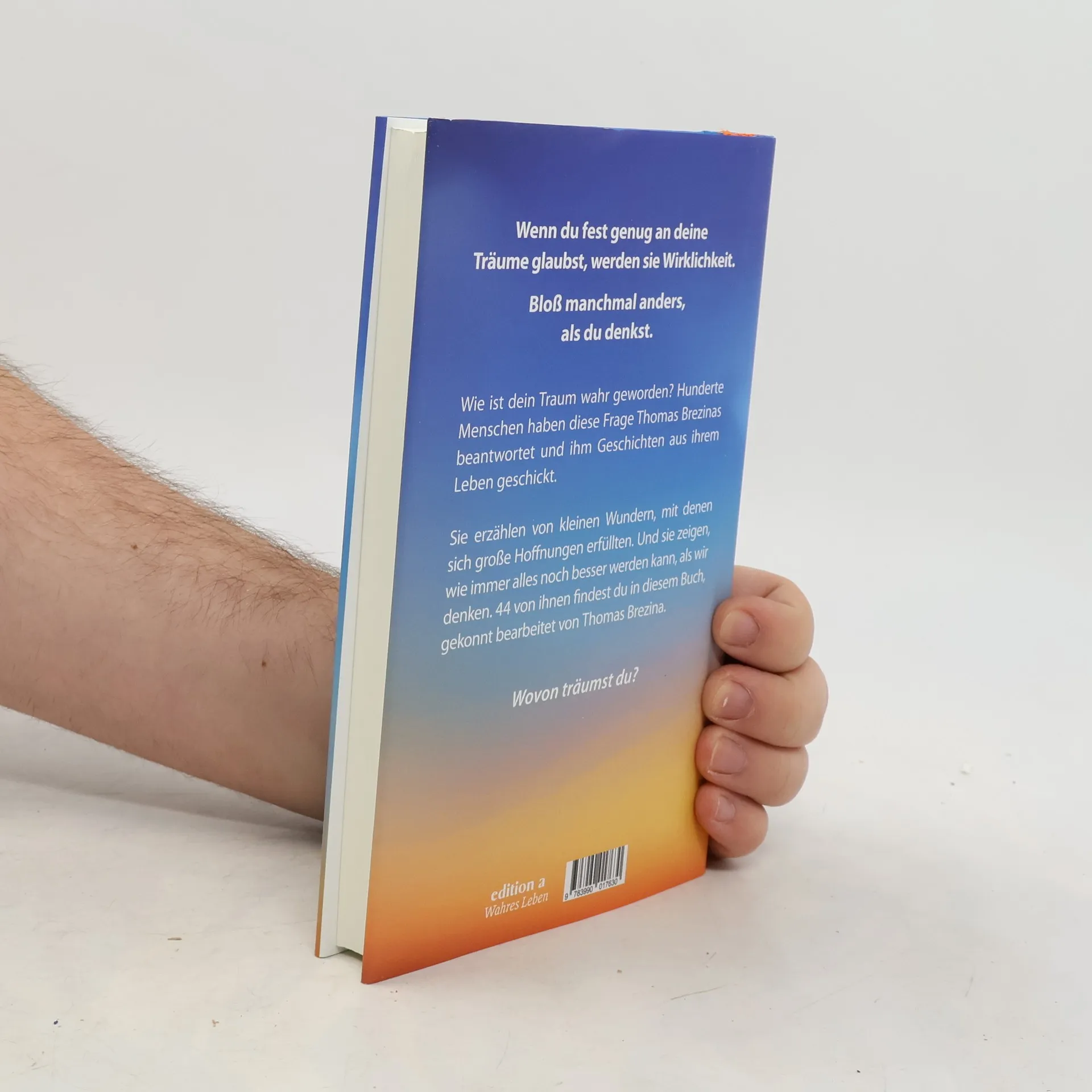 Thomas Brezina präsentiert in seiner neuen Geschichtensammlung wahre Geschichten zum Thema Träume. Das Buch zeigt, wie sich das Wunderbare im Alltäglichen versteckt und inspiriert mit berührenden Erzählungen von großen und kleinen Träumen. Ein ideales Geschenk, das Freude und Hoffnung verspricht.