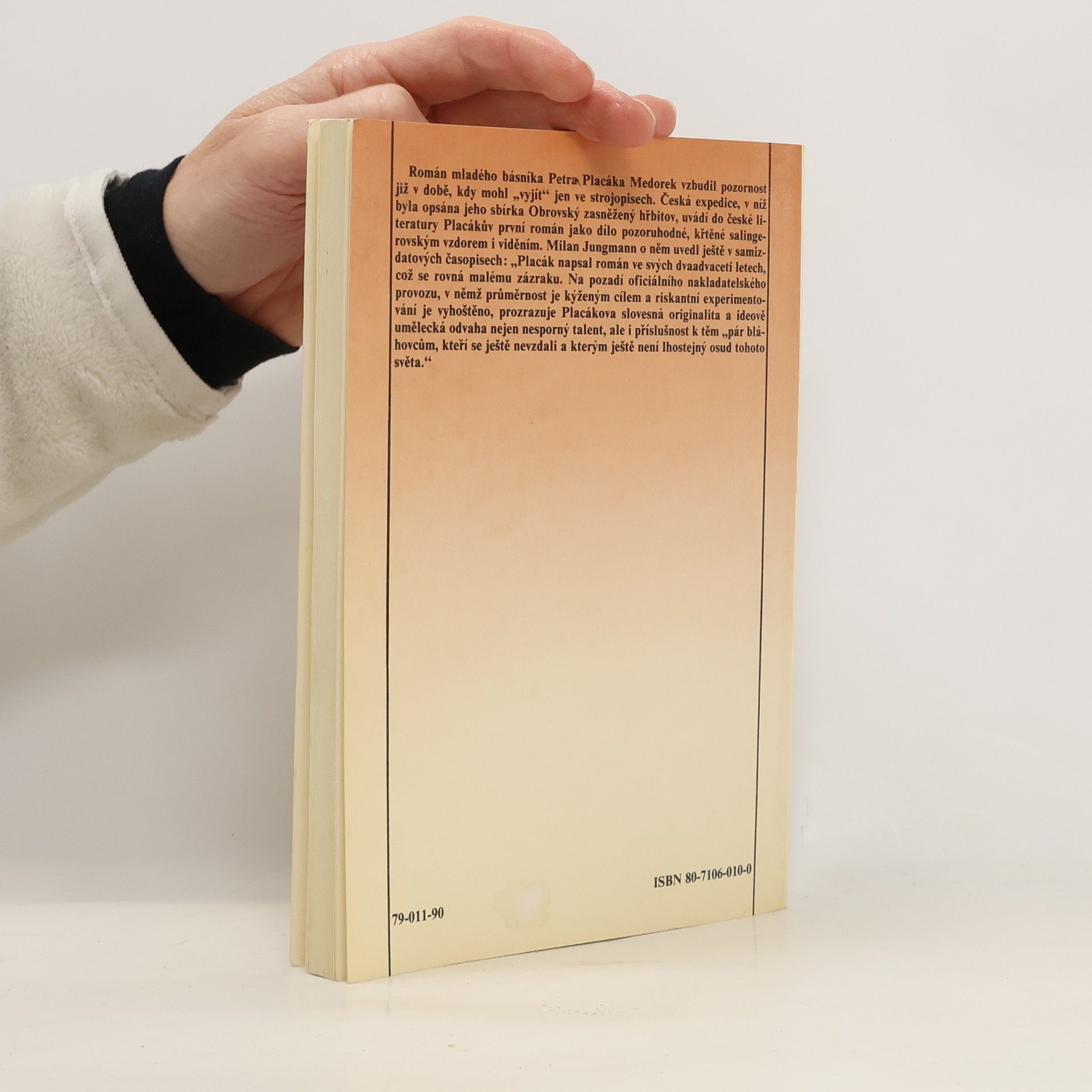 Román Medorek vyšel poprvé v samizdatu v roce 1985 a už tehdy vyvolal u disidentské obce značný rozruch. Za zaznamenání stojí názor bohemisty Alexandra Sticha, který Medorka pasoval na „jednu z nejlepších českých próz 80. let“. Tak či onak, kontroverznost si Placákův zběsilý románový debut udržel dodnes. I v roce 2010 působí tato syrová generační výpověď stejně „punkově“ a nespoutaně jako před čtvrtstoletím. Román poprvé vychází v úplnosti, se všemi původními ilustracemi Pavla Reisenauera.