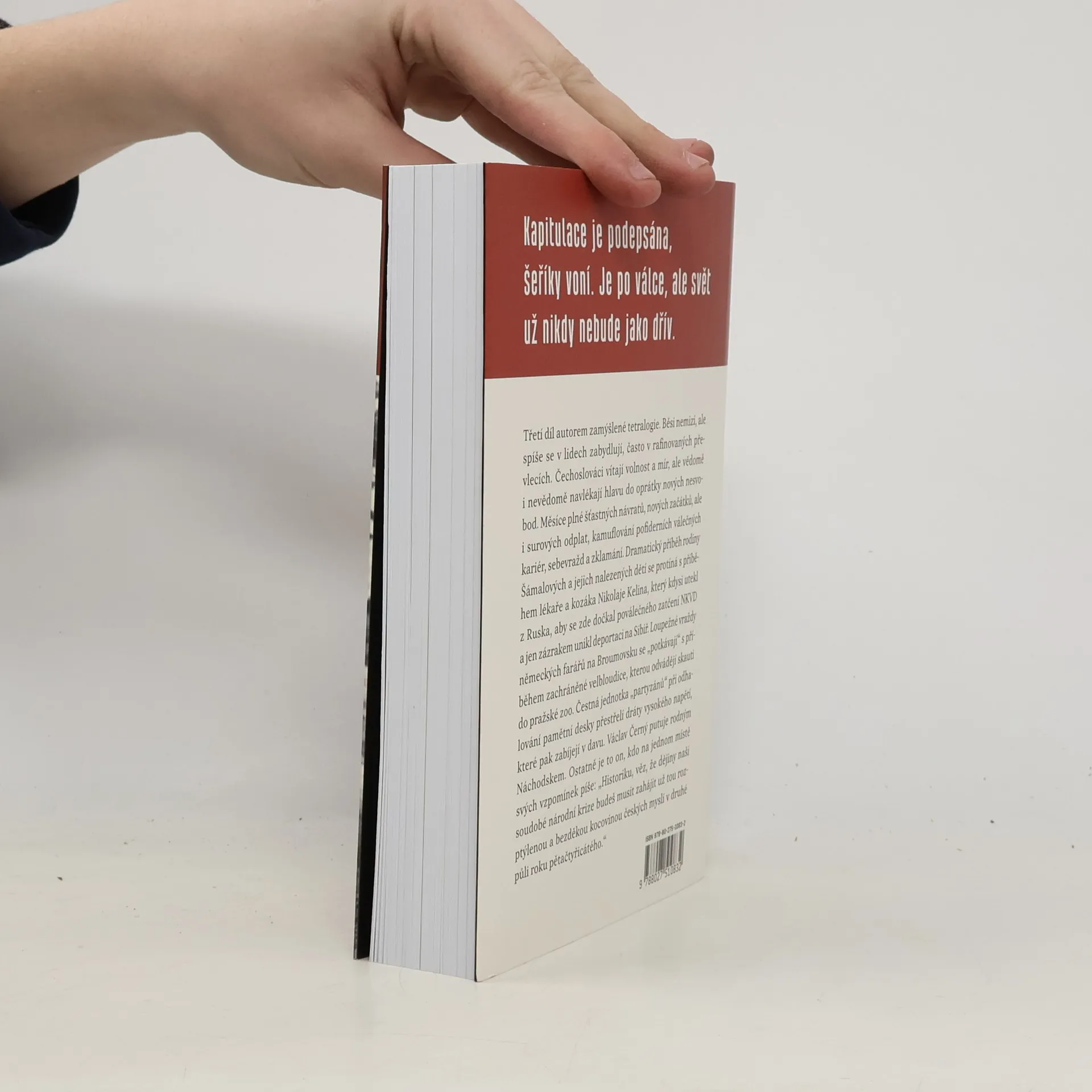 Dokumentární povídky z jara, léta a podzimu 1945. Kapitulace je podepsána, šeříky voní. Je po válce, ale svět už nikdy nebude jako dřív. Třetí díl autorem zamýšlené tetralogie. Běsi nemizí, ale spíše se v lidech zabydlují, často v rafinovaných převlecích. Čechoslováci vítají volnost a mír, ale vědomě i nevědomě navlékají hlavu do oprátky nových nesvobod. Měsíce plné šťastných návratů, nových začátků, ale i surových odplat, kamuflování pofiderních válečných kariér, sebevražd a zklamání. Dramatický příběh rodiny Šámalových a jejich nalezených dětí se protíná s příběhem lékaře a kozáka Nikolaje Kelina, který kdysi utekl z Ruska, aby se zde dočkal poválečného zatčení NKVD a jen zázrakem unikl deportaci na Sibiř. Loupežné vraždy německých farářů na Broumovsku se „potkávají“ s příběhem zachráněné velbloudice, kterou odvádějí skauti do pražské zoo. Václav Černý putuje rodným Náchodskem, čestná jednotka „partyzánů“ při odhalování pamětní desky přestřelí dráty vysokého napětí, které pak zabíjejí v davu. Ostatně je to profesor Černý, kdo na jednom místě svých vzpomínek píše: „Historiku, věz, že dějiny naší soudobé národní krize budeš musit zahájit už tou rozptýlenou a bezděkou kocovinou českých myslí v druhé půli roku pětačtyřicátého.“