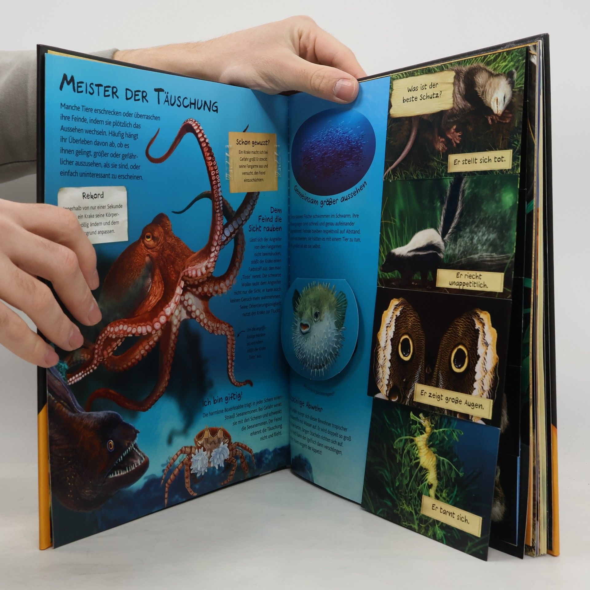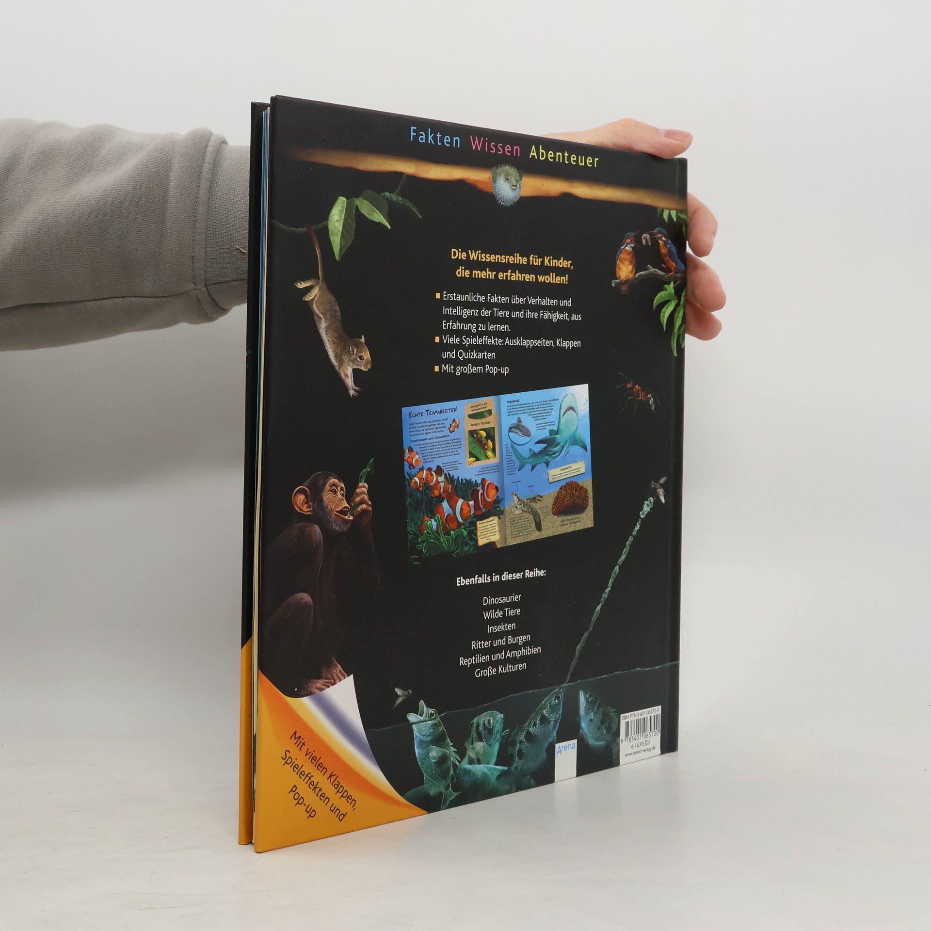 Ein interaktives Buch über die faszinierenden Verhaltensweisen von Tieren, das durch Pop-Ups und Spieleffekte zum Mitmachen einlädt. Es bietet spannende Informationen über Affen, Pinguine, Putzerfische und viele weitere Tiere.