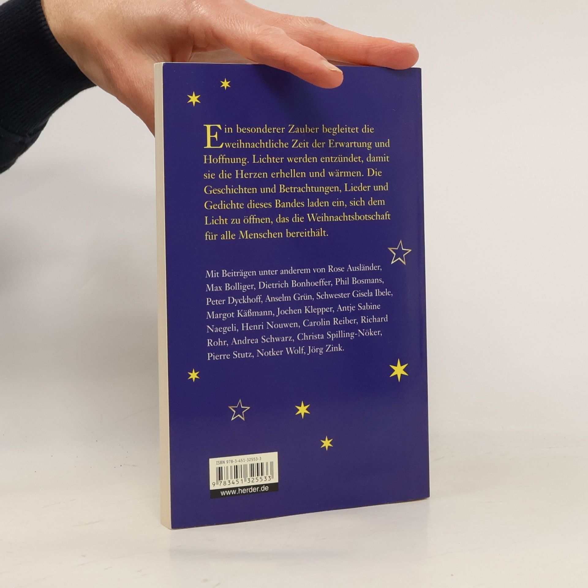 Dieser Band enthält Geschichten, Lieder und Gedichte, die die weihnachtliche Zeit der Erwartung und Hoffnung reflektieren. Er lädt dazu ein, sich dem Licht der Weihnachtsbotschaft zu öffnen und bietet Texte von verschiedenen Autoren, darunter Petra Altmann und Benedikt XVI.