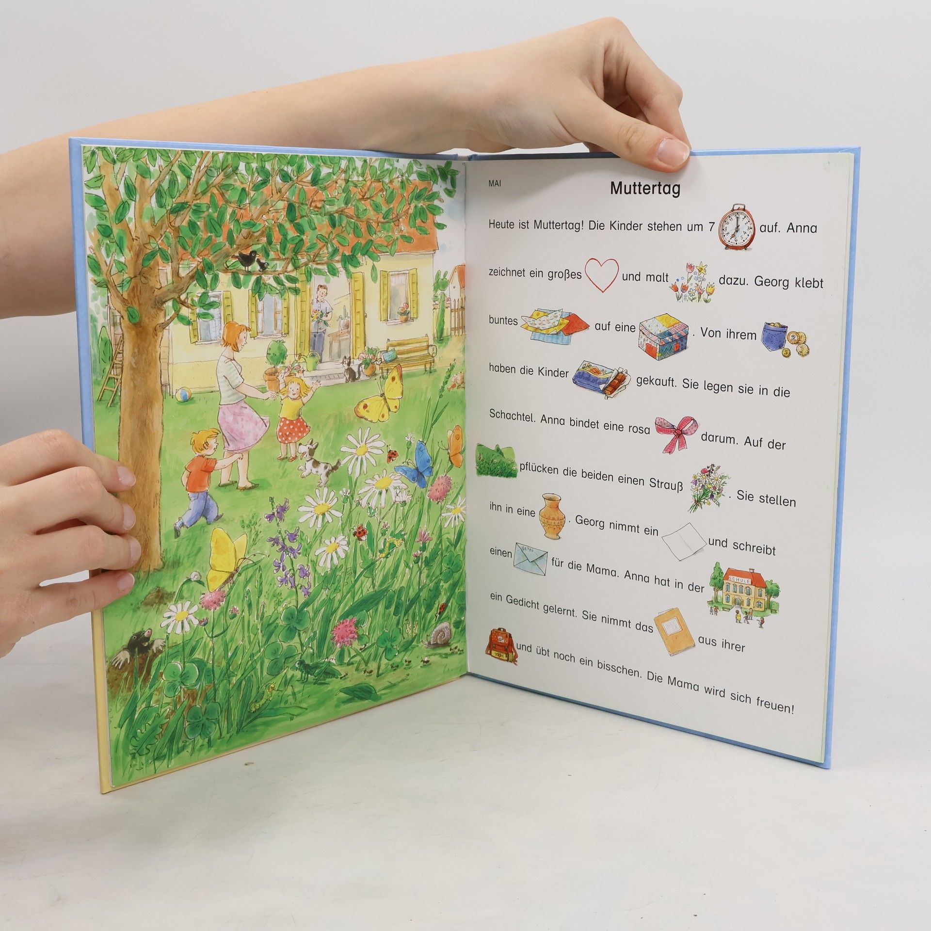 In diesem gekonnt illustrierten Erstleserbuch begleiten Anna und Georg die kleinen Erstleser durch ein erlebnisreiches Jahr. Einzelne Begriffe werden durch kleine Bilder ersetzt - so können die Kinder selbst oder zusammen mit den Erwachsenen spielerisch einen Zugang zum Geheimnis des Lesens finden. Die spannenden Erzählungen aus der Umwelt der Kinder bieten den kleinen Lesern zusätzliches Vergnügen. Mit Freude werden die Leseanfänger Anna und Georg bei ihren Abenteuern begleiten. Mein erstes Lieblings-Lese-Buch: 12 Geschichten erzählen die alltäglichen kleinen Abenteuer von Anna und Georg.