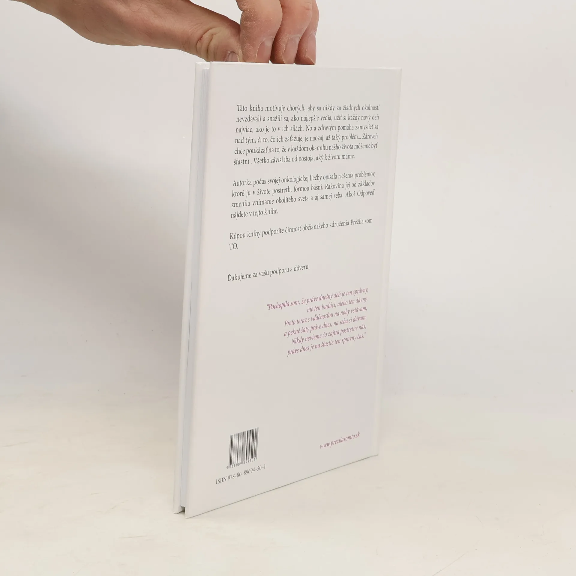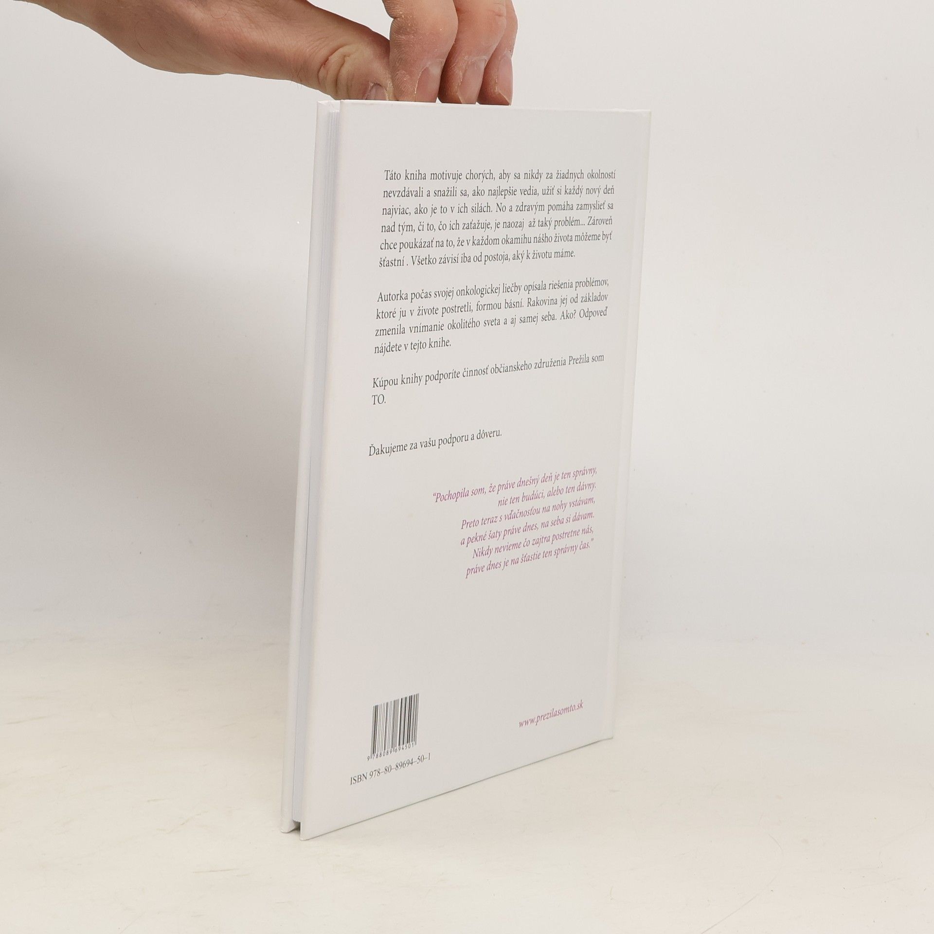 Táto kniha motivuje chorých, aby sa nikdy za žiadnych okolností nevzdávali a snažili sa, ako najlepšie vedia, užiť si každý nový deň najviac, ako je to v ich silách. No a zdravým pomáha zamyslieť sa nad tým, či to, čo ich zaťažuje, je naozaj až taký problém... Zároveň chce poukázať na to, že v každom okamihu nášho života môžemebyť šťastní. Všetko závisí iba od postoja, aký k životu máme.